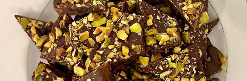 Top melted chocolate with whole or chopped nuts and sprinkle with sea salt.