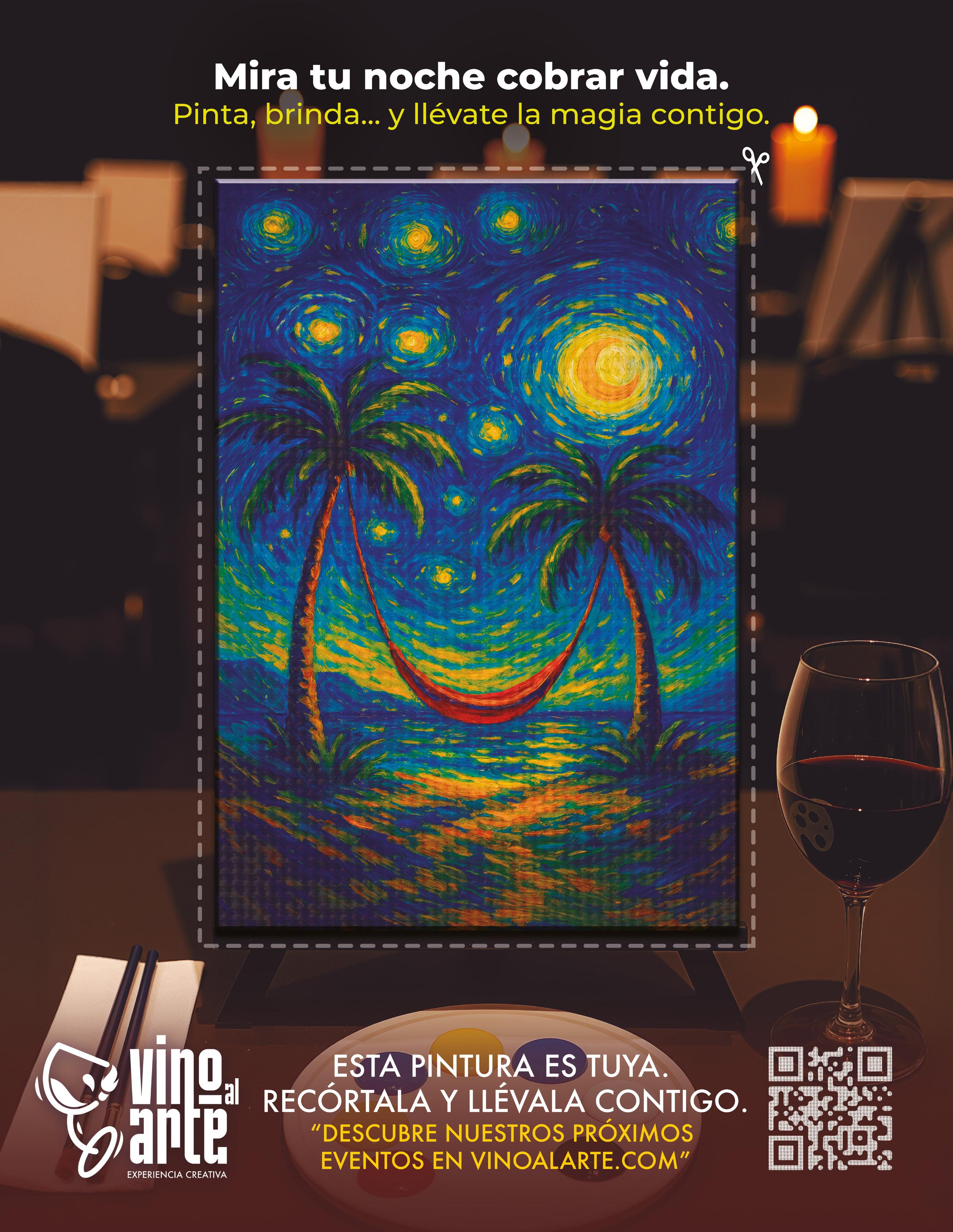Una experiencia creativa guiada con arte, música y dos copitas, donde pintas paso a paso y te llevas tu obra al final. Ideal para compartir y relajarte con buena vibra.