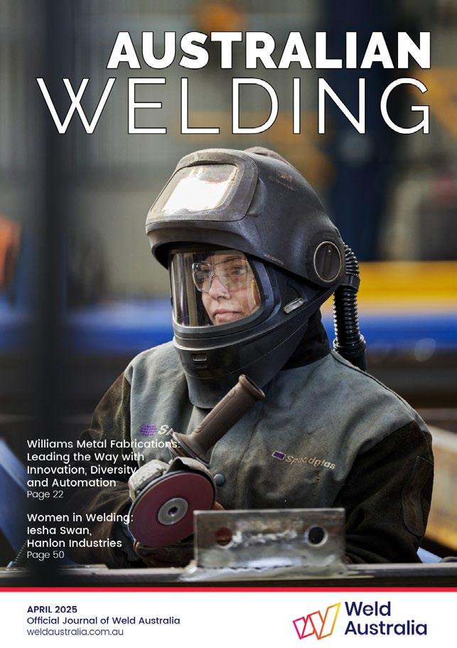 All rights reserved. No part of this publication may be reproduced or copied in any form without the written permission of Weld Australia. Weld Australia and its agents are not responsible for statements or opinions expressed by contributors in this publication, which are not necessarily those of Weld Australia. Publication of any advertisement does not constitute endorsement by Weld Australia of any product, nor warrant its suitability.
