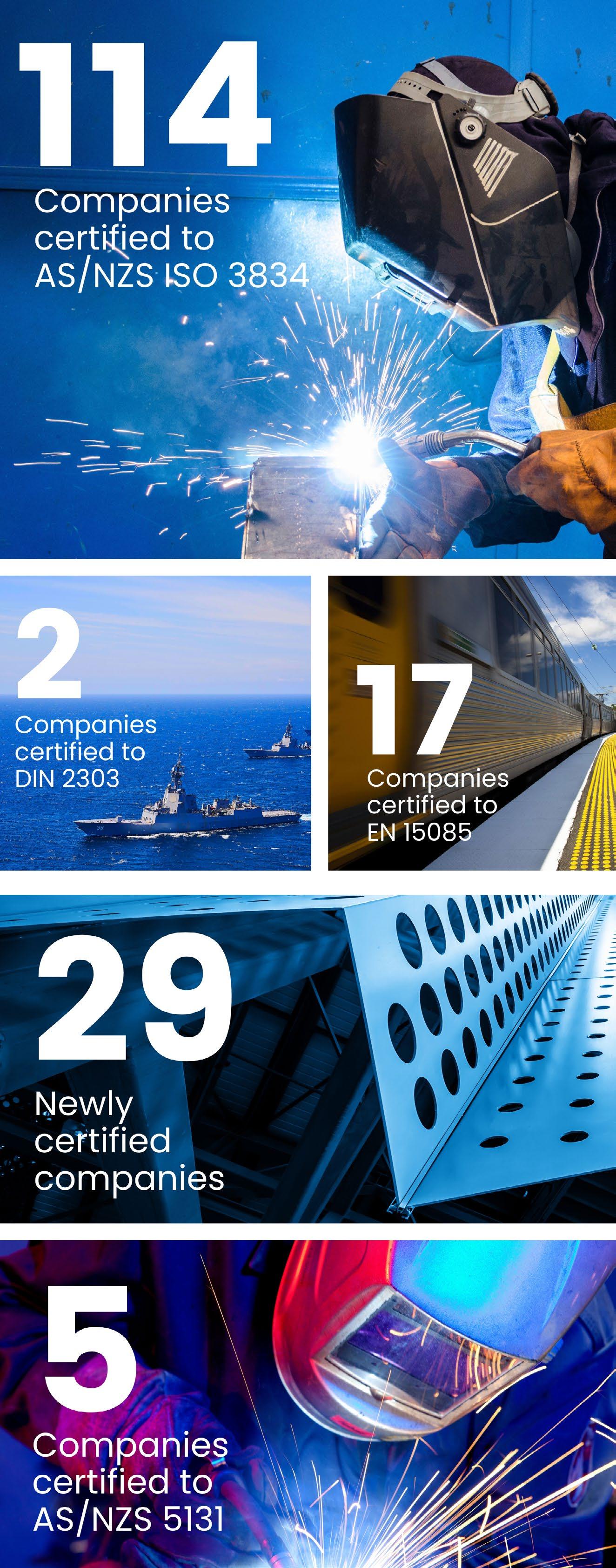 Our qualification and certification team also had a busy year, launching a new combined certification service for AS/NZS ISO 3834 and AS/NZS 5131. The team also certified 28 new companies, qualified 253 individuals and certified 38 individuals.