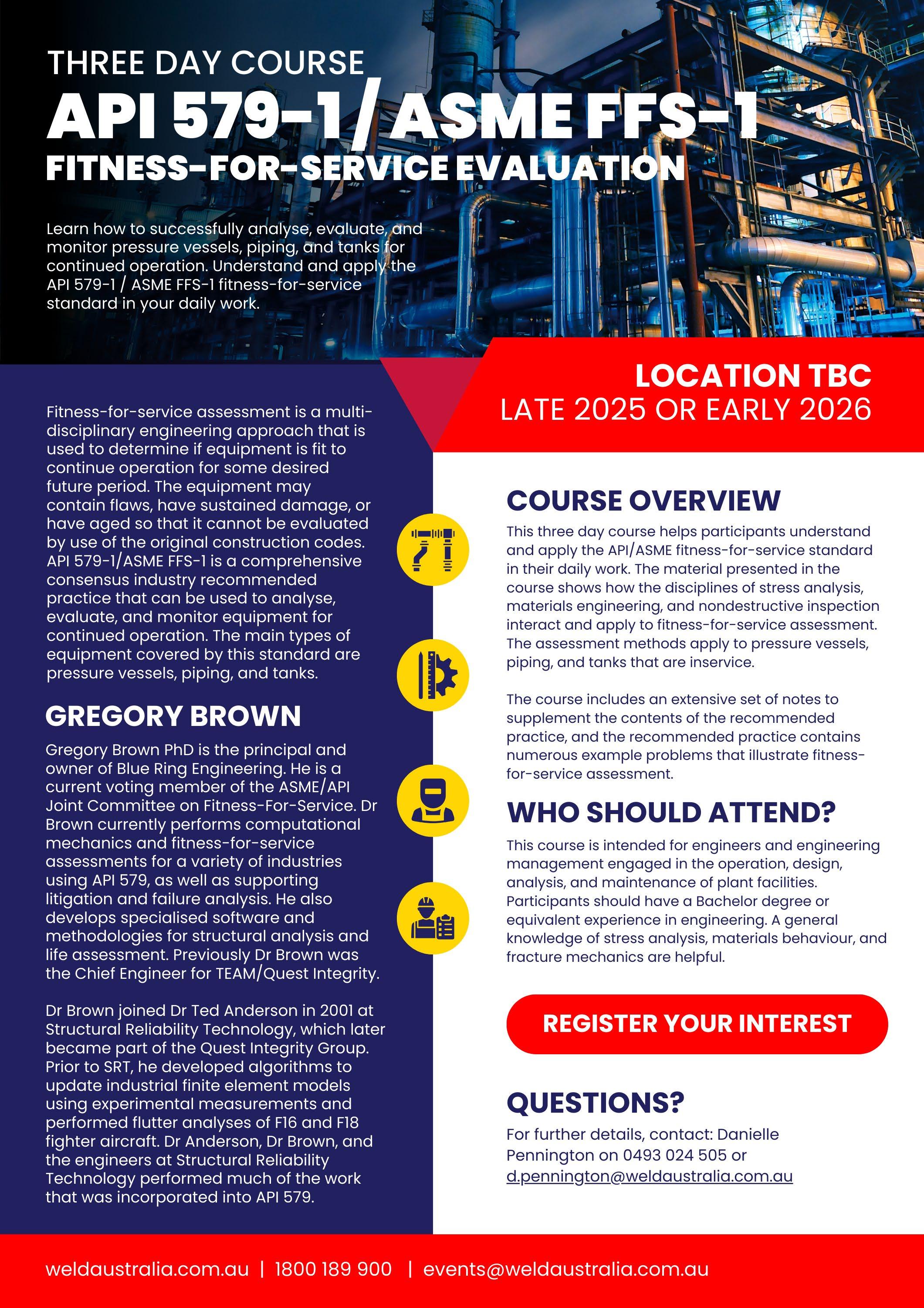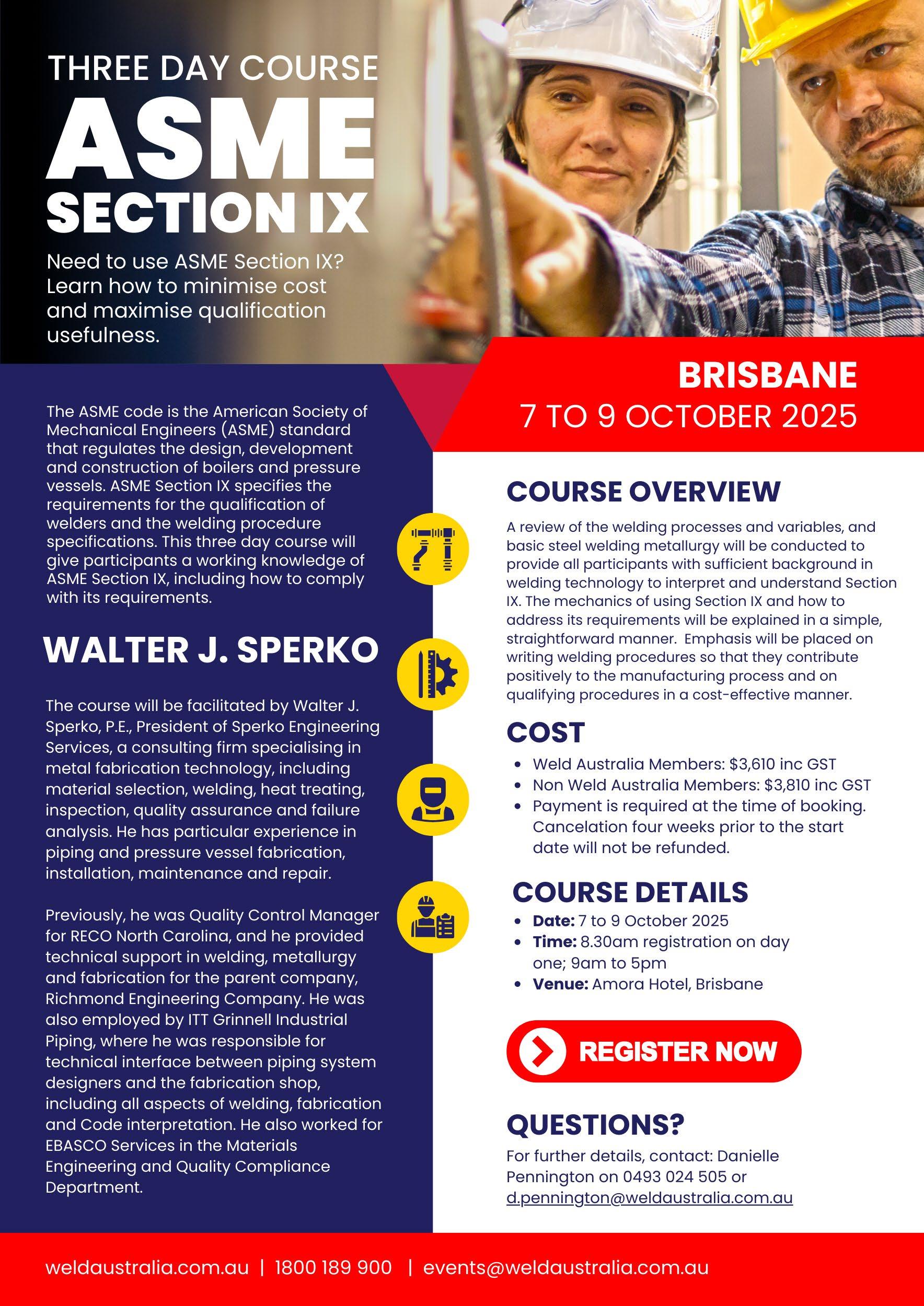 This course provides advanced knowledge of welding and inspection theory and application, including NDT, mechanical and visual inspection techniques, inspection procedures and acceptance criteria, identification of weld imperfections and more. Come along in-person in Brisbane in November.
