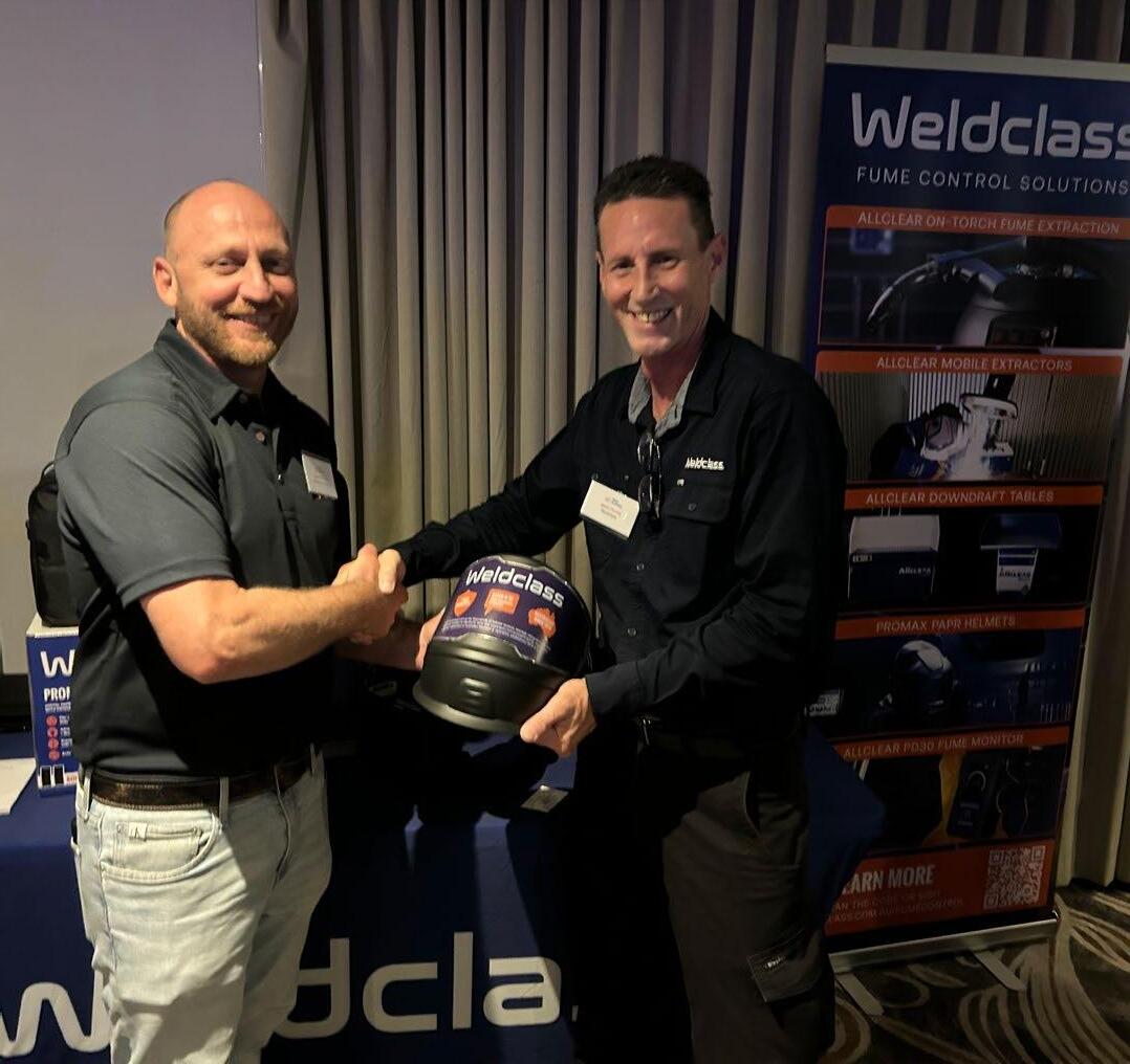 Steelstruct team member with Corentin Avila (left) from Weld Australia.