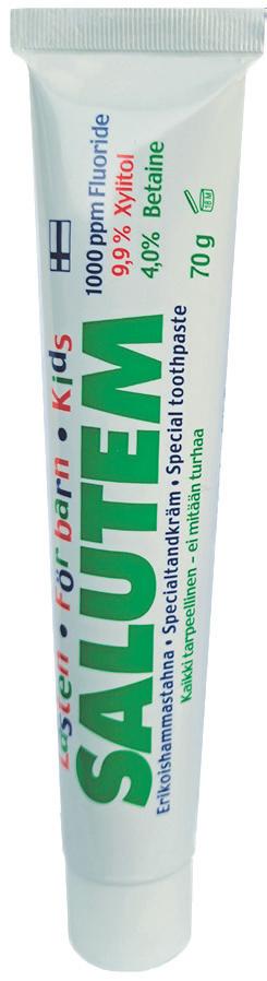 Salutem specialtandkräm för är speciellt utvecklad för barn. Tandkrämen är skonsam, icke-skummande och helt utan smak.