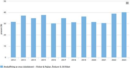 I årskurs 2 på gymnasiet röker 26 procent av flickorna och 19 procent av pojkarna. I samma årskurs snusar