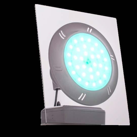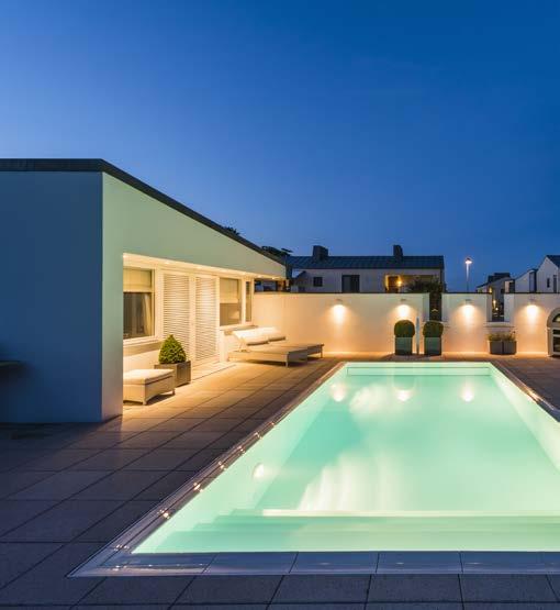 E Monter poollamperne så de vender væk fra terrassen. Derved undgår du at blive blændet. Monter lamperne i ca 50–60 cm dybde fra poolkanten.