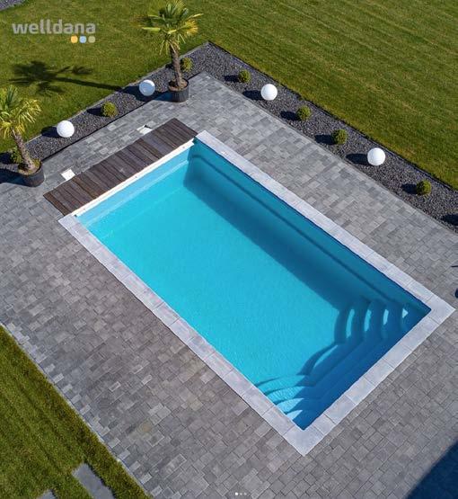 legeklodser. For ligesom med legoklodser sætter du styropor blokkene sammen. Og skaber din egen pool. Det er en mere kompliceret proces end fx at etablere en stål pool. Derfor anbefaler vi, at du spørger vores dygtige fagmænd om hjælp, hvis du vil i gang med at bygge selv. Du finder dem let på www.welldana.dk/forhandler.