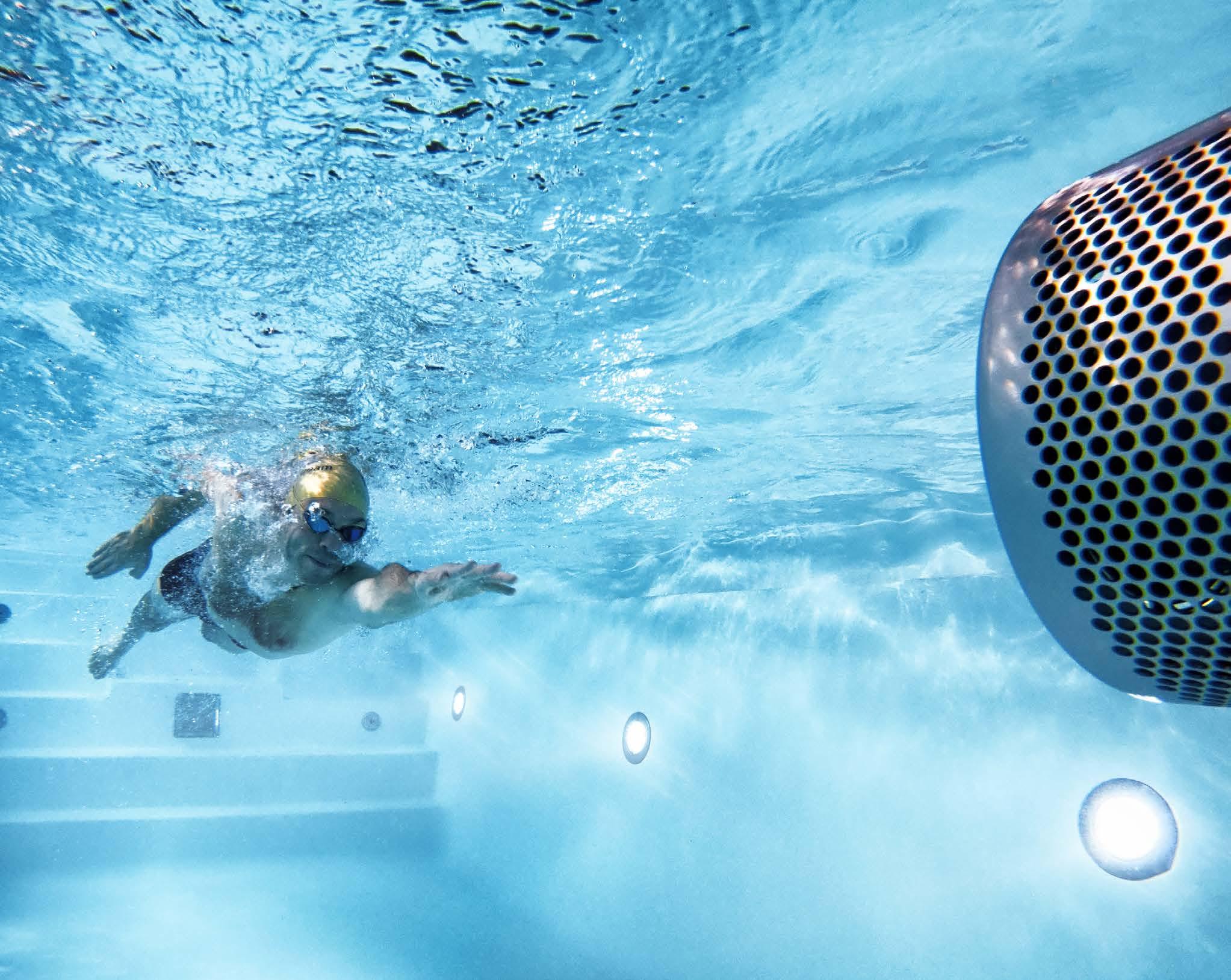 A Om du er til wellness, motion eller sjov. Mulighederne er mange. Med en svømmetræner kan du træne mange muskelgrupper uden hele tiden at skulle vende i poolen. Svøm på stedet ligeså længe du vil.