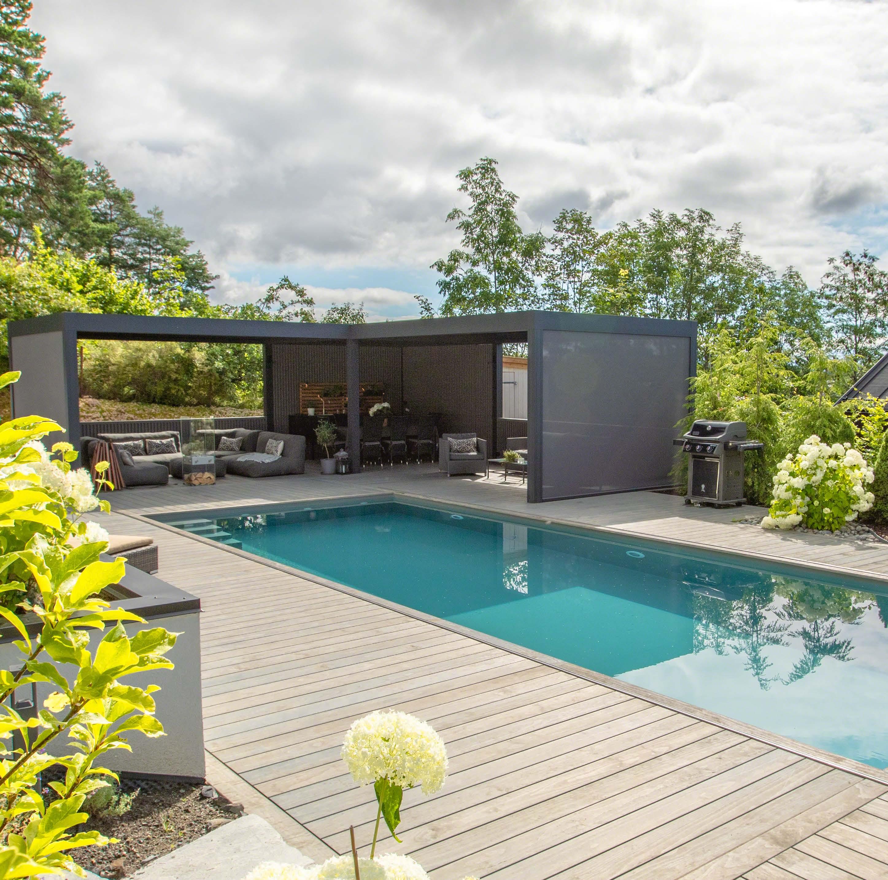 En veldesignet have kan komplementere og optimere din pooloplevelse og skabe et smukt og indbydende uderum. Planter og landskabsarkitektoniske funktioner kan tilføje farve og tekstur til dit poolområde. Blomstrende planter kan give farve, mens frodige grønne planter kan skabe en følelse af ro og privatliv. Omhyggeligt lysdesign kan tilføje stemning og gøre din pool til et sted at slappe af både dag og aften. Med lidt planlægning og kreativitet kan din have og pool blive den perfekte oase. På de næste sider kan du læse mere om, hvilke pools vi tilbyder til din have. →