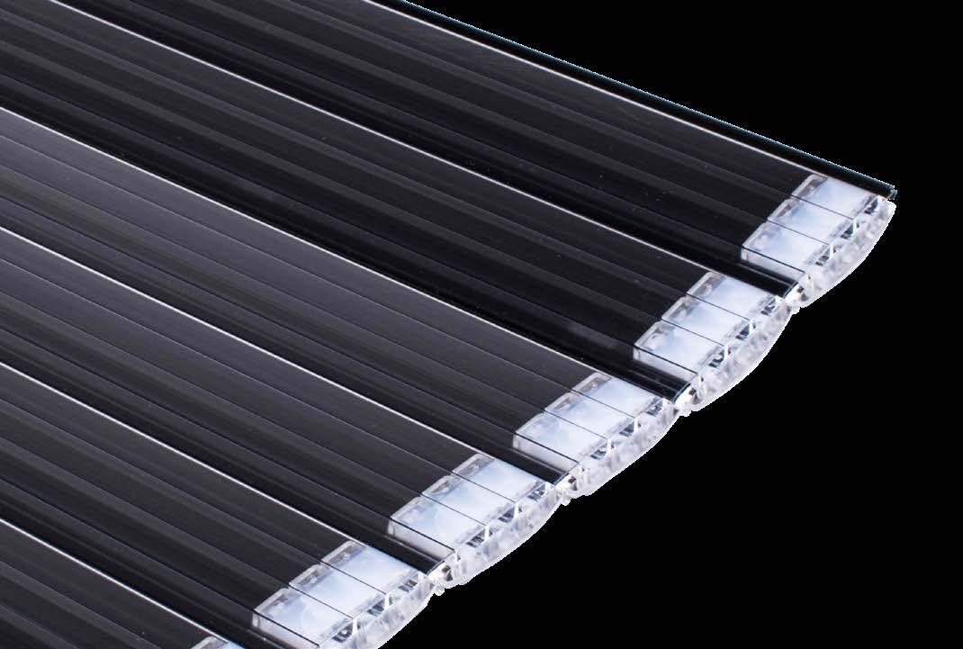 Aquadeck® er passionerede omkring swimmingpools. Vi følger trends og innoverer konstant. Aquadeck® lancerer nu Graphite Solar: En mørk polycarbonat-lamel med solareffekt. Resultatet er fantastisk.