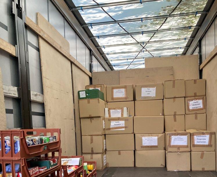 There were over 30 volunteers to help sort and pack. It was such a good atmosphere and to have all ages and backgrounds working with determina�on, good spirit and humour was incredibly special. The truck arrived in Zamość! Philip Edmonds’ fully loaded lorry from Bri�sh Humanitarian Aid, arrived and the items were loaded onto smaller Ukrainian vans for distribu�on. It took mul�ple vans to distribute the food that was donated. The first van crossed the Ukrainian border for distribu�on to people who had no access to food by any other means. Again, I want to say thank you for all your support.