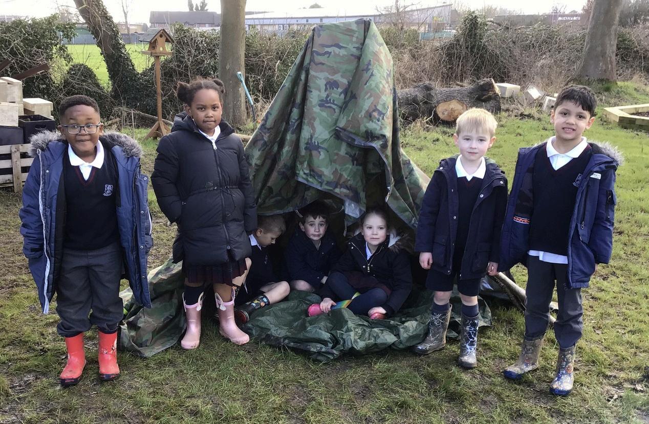 In response to the wet weather, Kingfishers and Owls refined their den building skills in the outdoor learning area. We all wondered whether boat building might have been more appropriate! The finished dens were wonderful and as you can see from the photograph the children were justifiably very proud.