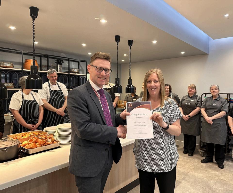 Stephen Hill, School ChaplainMr Holman was delighted to present Kelly in our Catering Team with her certificate (and gold star badge!) awarded to her as Chartwell's Colleague of the Quarter Kelly was nominated by another member of the team, Jackie, for being such a star, always having everyone ' s back, and doing so with a permanent cheery smile All students, and many parents, will know Kelly from behind the serveries, but she's also near-ever-present at other events, be they after School or at a weekend As selfeffacing as she will be, please do feel free to congratulate Kelly on her achievement