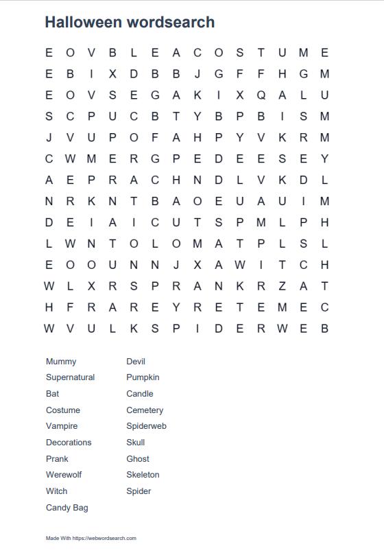 HALLOWEEN WORDSEARCH