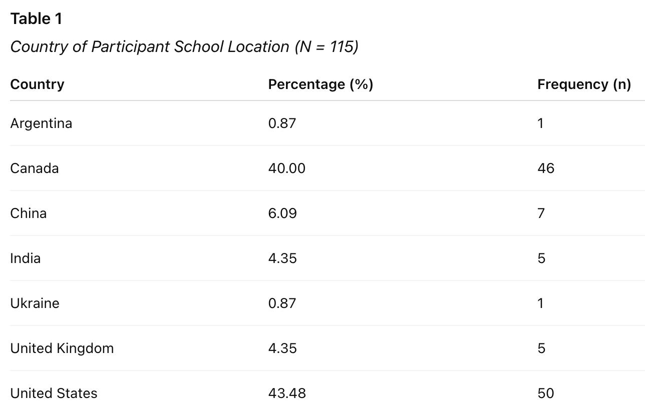 ● Geographic diversity: Participants represented a wide range of countries, with a majority of participants coming from North America (US and Canada)