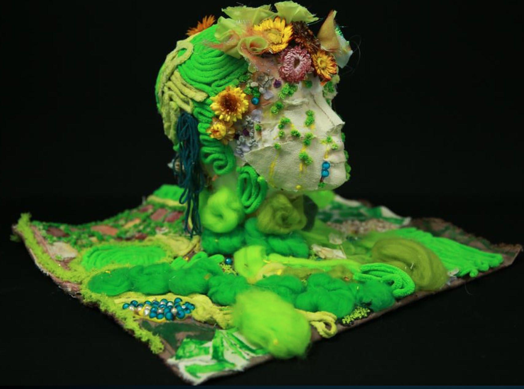 In Harmony Mask, Angelina captures the essence of humanity’s unity with the natural world. Her design features a face adorned with vibrant flowers and greenery, symbolizing growth, renewal, and the joy of life. The human-like mask bridges the boundary between person and planet inviting viewers to see themselves as part of nature’s living fabric rather than separate from it.