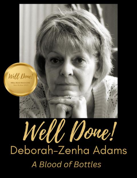 Deborah-Zenha Adams is an award-winning author of novels, short fiction, CNF, and poetry. Her work has appeared in Adelaide Literary Magazine, The Orchards Poetry Journal, One, Sheila-na-gig, and other journals. You’re invited to visit her website to read more of her work. www.Deborah-Adams.com