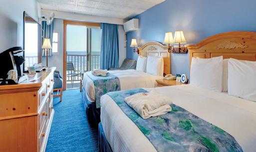 Walk from your room onto the sand! Many rooms have decks or patios on the beach or with ocean views. Amenities include an indoor pool, hot tub, exercise room and bicycles. Rooms include wide screen TV, refrigerator, wifi and more. Two of our buildings have elevators. Efficiencies and cottages are available. Here in Casino Square enjoy shopping, a restaurant with fun food and ice cream, plus a playground and arcade. Many more attractions are nearby.