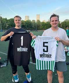 Pat DyerWells Voice has helped sponsor new kit for a football team in South London which has nine players who all went to Wells Blue School. AFC Tomlin play at Canada Water in the Powerplay Premiership, after gaining promotion two seasons ago. The former Blue School students in their ranks, who have all ended up living and working in the same area of London, are Mike Gouldney, Joe Jackson, Jed Hampson, Nathan Vallis, Ed Jackson, Jake Piers-Mantell, Jack Savery, Alex Main and Marco Hiscox. Some of the players are seen in a recent team photo, while Jed and Ed display shirts with the Wells Voice logo.
