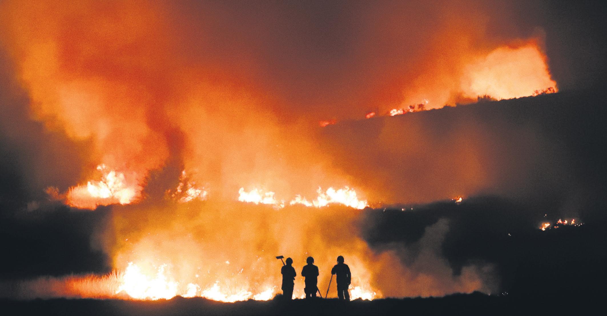 Dramatic scenes from the fire in Stockhill Woods, Priddy. Turn to page 2