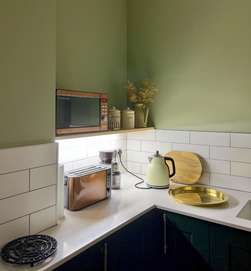 Kitchen facilities include an electric oven and hob, microwave, toaster, kettle and coffee grinder. (This grinds best when the hopper is full; beans are on the shelf.)