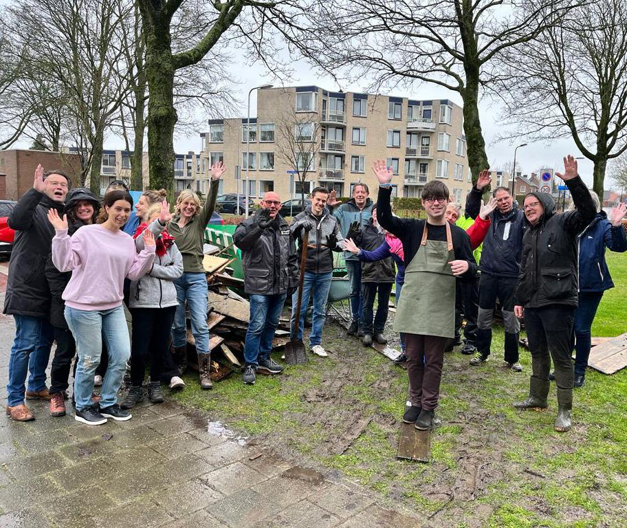 Tal van vrijwilligers melden zich aan om tijdens NLDoet op 10 maart mee te helpen met de vergroening en het opknappen in en om het kantoorpand aan de Cuperstraat 9. Zelfs in de denderende regen kan SWL op hen rekenen. Ze maken en vullen plantenbakken voor het aanleggen van een mooie kruidentuin om mee te koken, schrobben het buitenterras, hangen vogelhuisjes op, vernieuwen zitgelegenheid en nog veel meer.