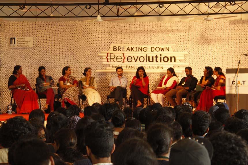 (Top left) Panel Discussion hosted by College of Architecture, Trivandrum (Above) Workshops held at Continuum, Zonal NASA Convention (Left) The Keynote Speech by Ar. Raj Rewal at Continuum (Below) The Zone 6 family of 2015-16