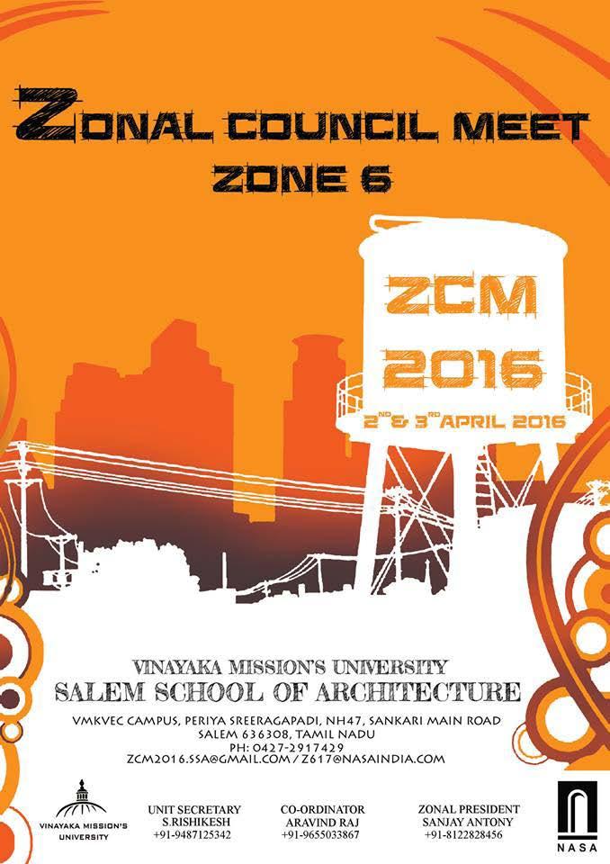 Zonal NASA Conventions are one of the important events initiated by National Association of Students of Architecture, India to keep up the interactions within colleges in each respective zones of NASA India. Each ZONASA is unique with respect to the culture and lifestyle of respective zonal areas in the Nation. ZONASAs are a preparatory platform for all colleges to perform well in Annual NASA Convention. Each Zonal Presidents are incharge of their respective zones ZONASAs. Official posters of six ZONASAs are published after this page. More details regarding each ZONASAs will be updated in the next edition of THOUGHT PAPER SCISSORS.