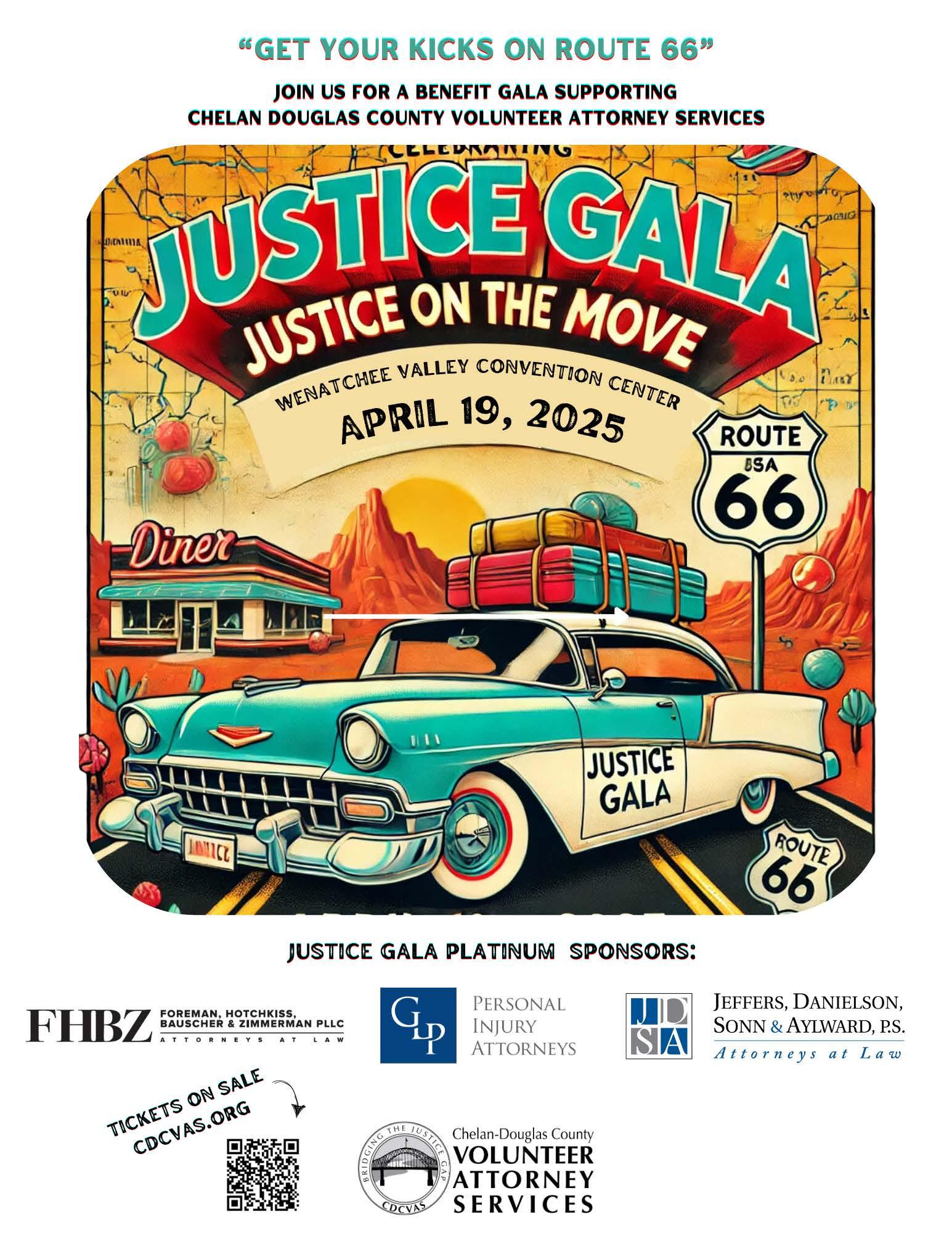 Join us for the JusticeGalaonApril19,2025, at the Wenatchee Valley Convention Center! This annual celebration brings together supporters, advocates, and community leaders for an evening of inspiration, impact, and fun all insupport ofensuringequalaccesstolegalaid. Enjoy a lively night, with happy hour and dinner, exciting auction items, and powerful stories that highlight the difference legal help makes in people's lives.