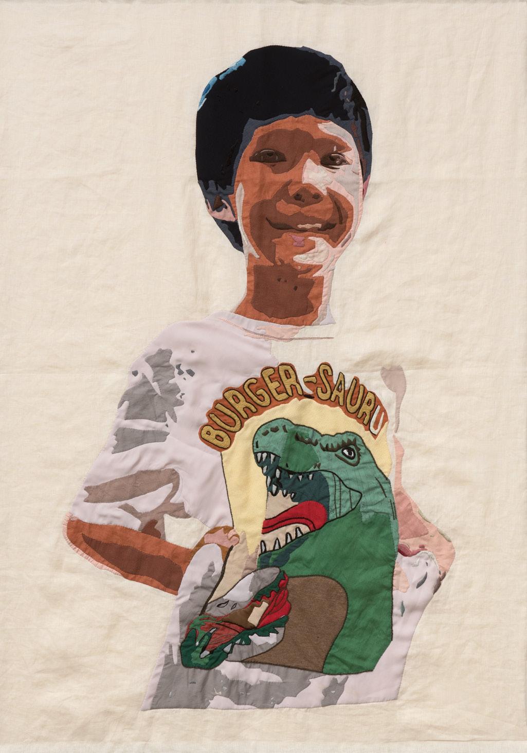 Võ Trân Châu, A Boy, 2022, hand-quilted found fabric and embroidery on linen Courtesy of the artist and Galerie Quynh