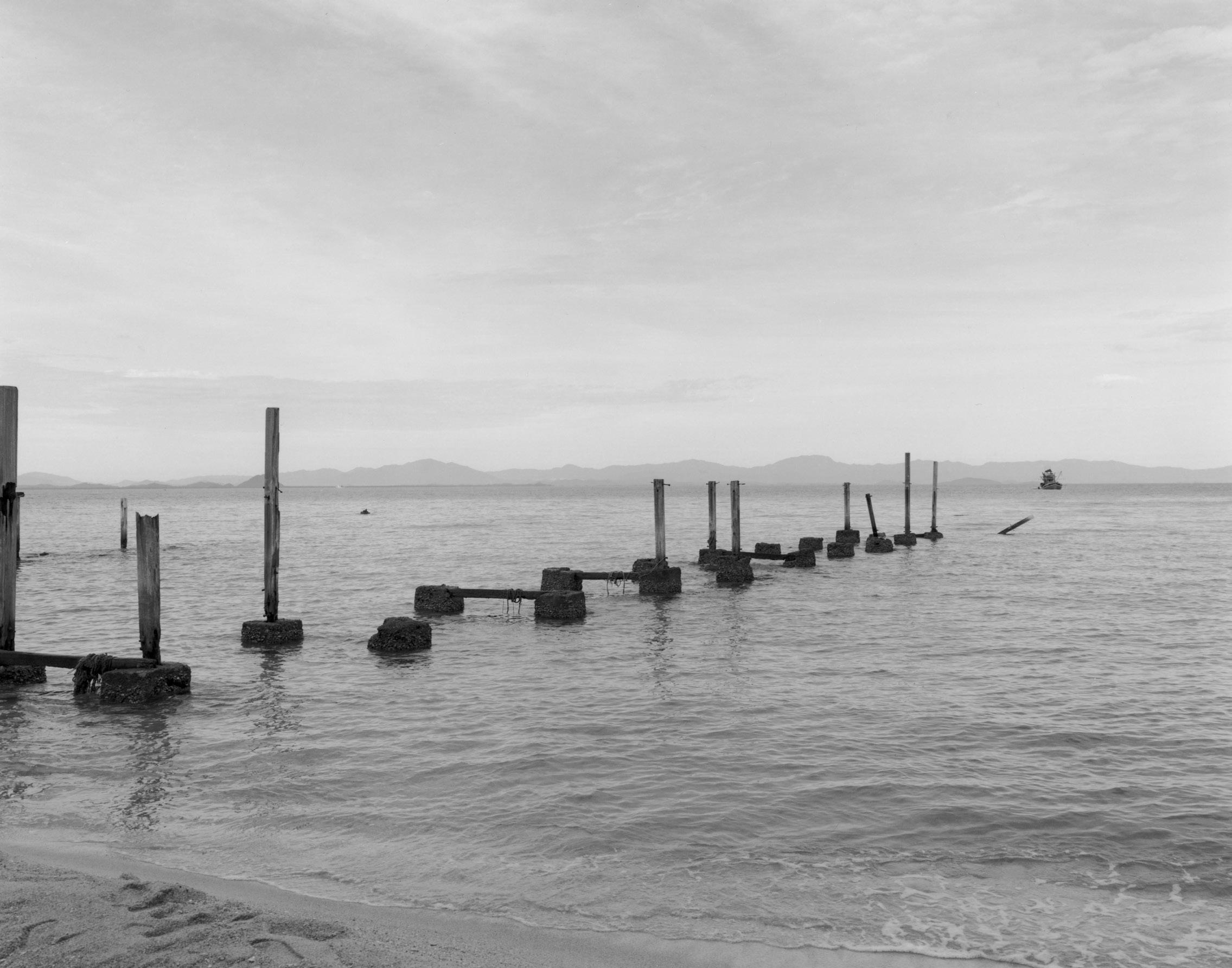 The photograph shows remnants of the dock on Pulau Bidong. After being rescued and taken onto a larger ship, the refugees would deboard here and walk to the island.
