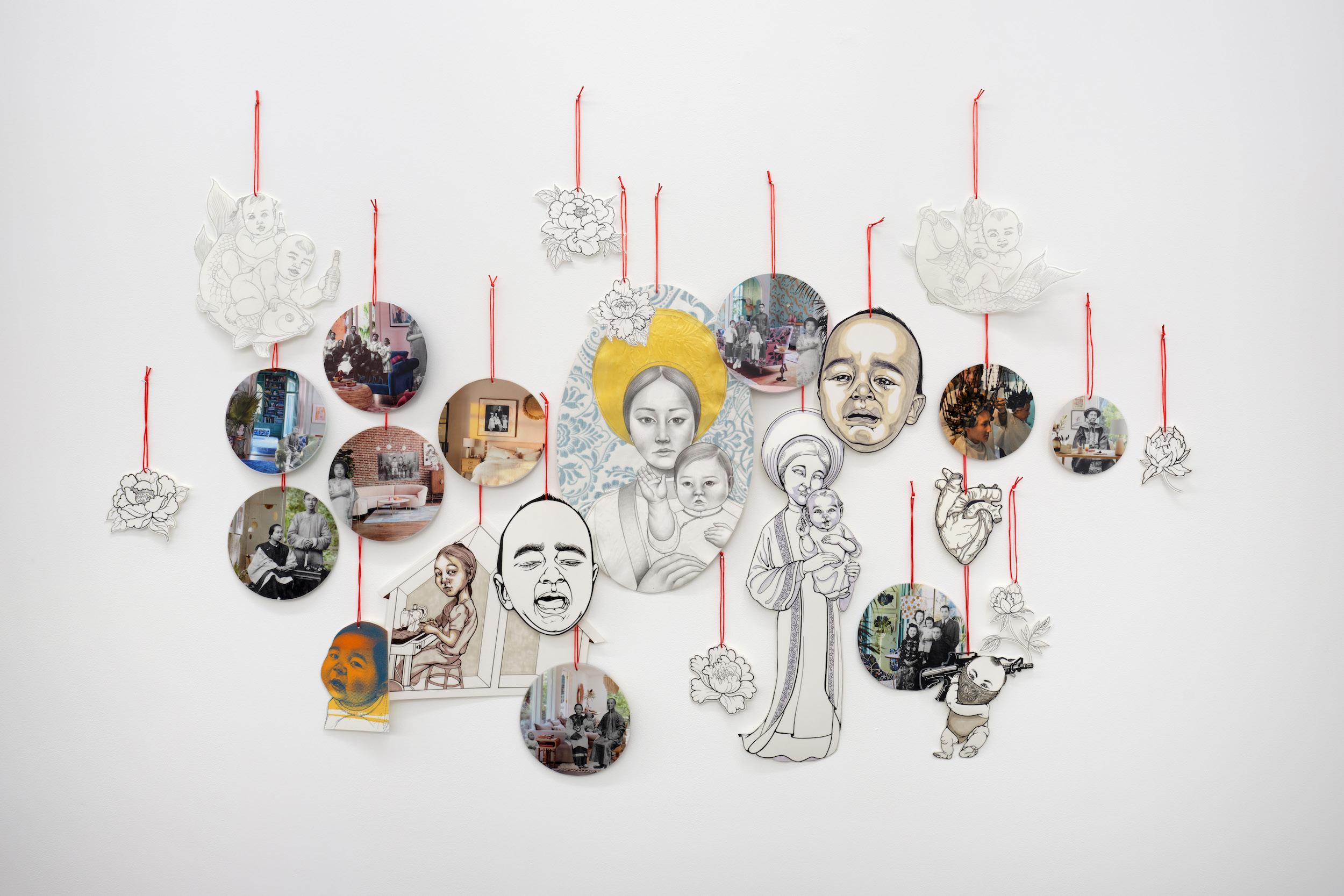The exhibition presents Vietnamese artists who fled or immigrated to the United States, artists who returned to their homeland, and artists who never left Vietnam. While many of the artists touch on complex ideas and associations, their works on view can be divided in four main approaches. Dinh Thi Tham Poong, Nguyen Quang Huy, Nguyễn Thế Sơn, Nguyen Van Cuong, and Võ Trân Châu reflect on elements of tradition versus modernization in present-day Vietnam. Binh Danh, Dinh Q. Lê, and Tuan Andrew Nguyen evoke memories and representations of war in the East and the West. Hoang Duong Cam, Ngô Đình Bảo Châu, and Phan Quang focus on the complex interplay between history and memory in dealing with the Vietnamese past. And Ann Le, Antonius-Tín Bui, Binh Danh, and Phung Huynh address aspects of the Vietnamese diaspora, including the traumatic experience of fleeing and refugee camps, as well as the complexities of mixed identities associated with the country of birth and the country of destination. The exhibition also presents contextual materials, including refugee drawings from the Art in the Camps (Garden Streams) Archive of the Chinese University of Hong Kong Library’s Special Collections, photographs by Les Bird of Vietnamese boat refugees in and around Hong Kong, and the documentary The Next Generation by Sandy Northrop about transformations in the lives of young Vietnamese in the 2000s.