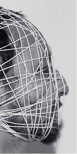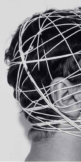 connection and isolation. While the eyes of In Your Eyes could be watching you, they could also be screened for biometric identification. In Is Anyone Listening or Am I Talking to Myself?, the ears that appear disconnected from a disassembled computer could point to the loss of social connection in a digitized world, or they could be literalizing the idiom “the walls have ears.”