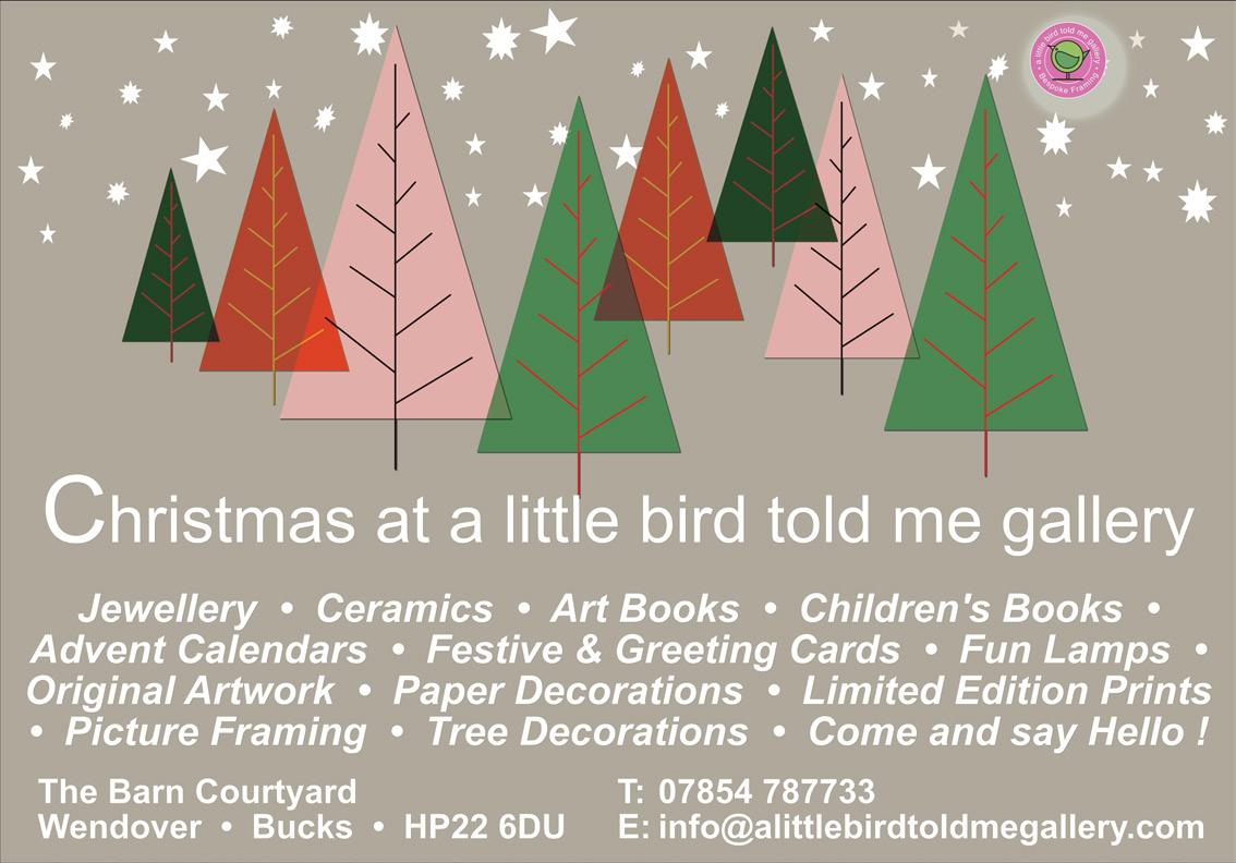Also - 26/27th, 10am-4,30pm, Wendover Library Room - Christmas Exhibition. Admission free; donations appreciated. Original artworks, prints and cards for sale. www.wendoverartclub.co.uk
