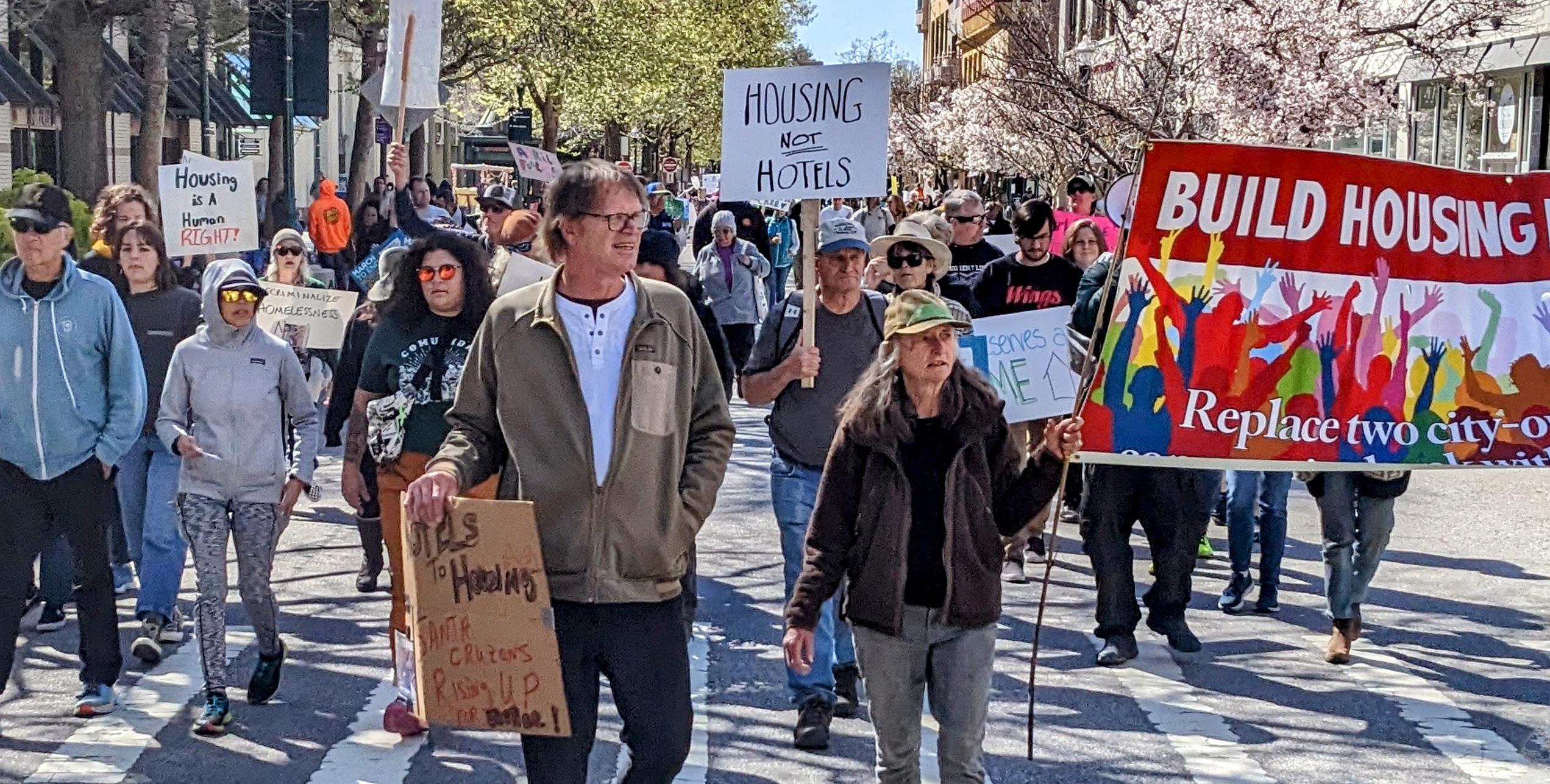 Bright sunshine and crisp cool air greeted folks joining the March to End Homelessness on April 1st. As Mayor Fred Keely raised his fist to the sky and promised to do even better for those in need, a note of hopefulness rang through the air.