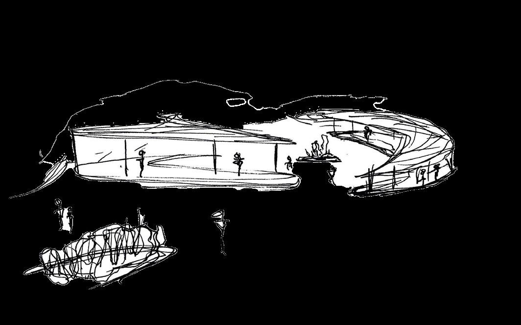 The site flow circulation in the space is expressed through force perspective illusion, which can be seen from certain standing points. Additionally, the shadows of the Sunlight play a crucial role in creating a dynamic and ever-changing environment. The facade’s wave circulation design takes inspiration from the concert hall in Kristiansand, Norway. The human flow within space is representative of the natural elements that make up the environment.