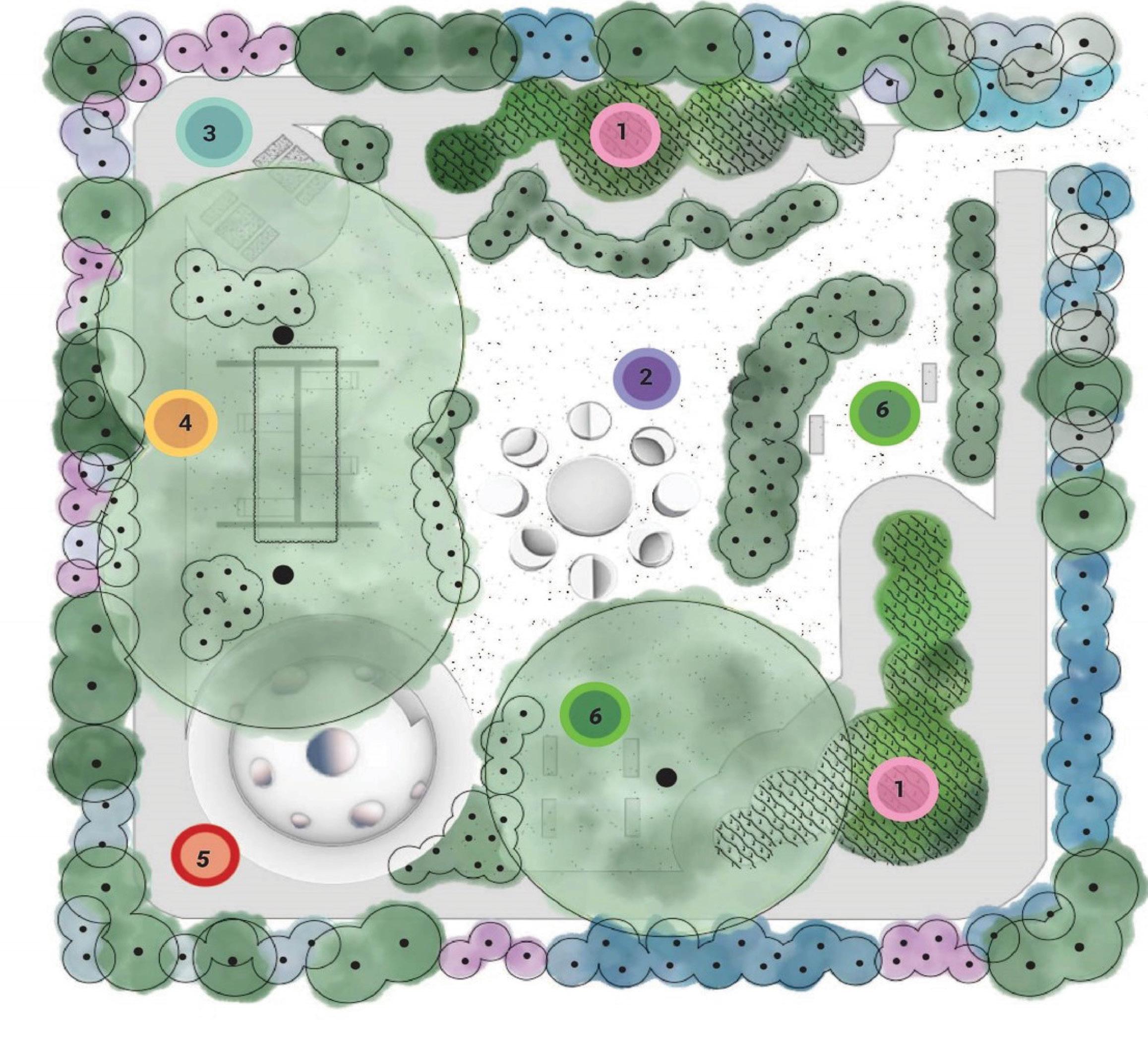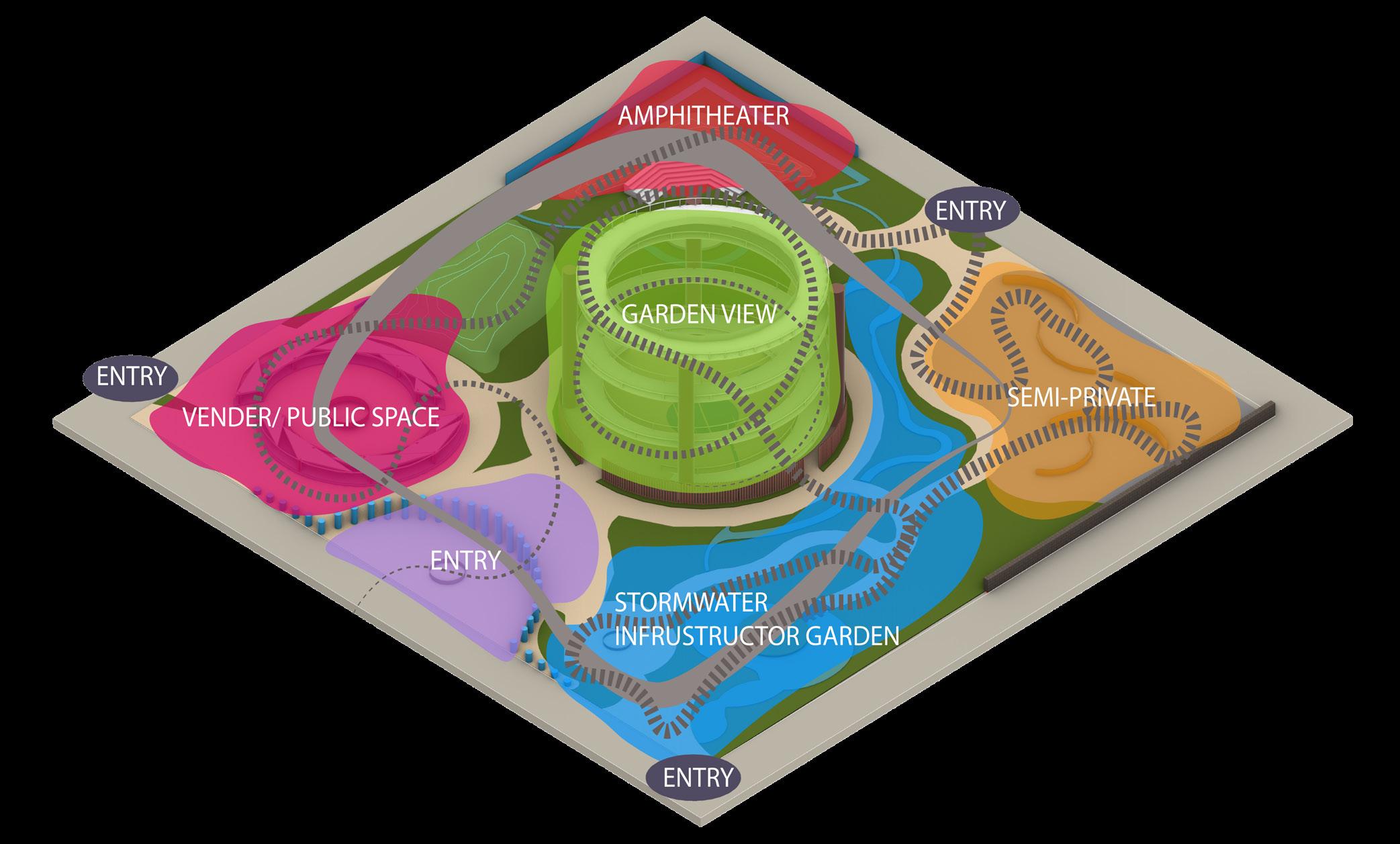 Japan’s gardens symbolize the relationship of nature and plants. Within this site a develop spa, tearoom, and three Japanese style gazebos introducing a public and private setting. Throughout the site and patron will immerse in a wellness tranquil state of mind.