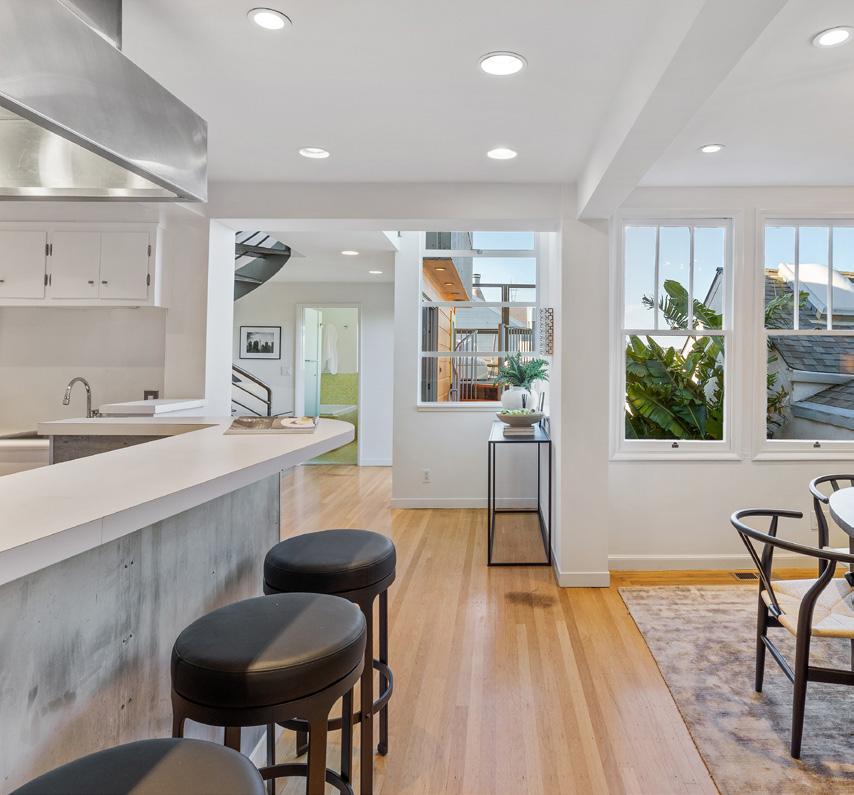 Loaded with custom features such as soaring walls of windows, two-level library atrium, and clever storage, each design decision was made with an eye to shared light, air, views, and ease of living. Hardwood flooring, mid-century fireplace, two laundries, and one-car garage plus storage complete this one-of-a-kind Bernal residence.