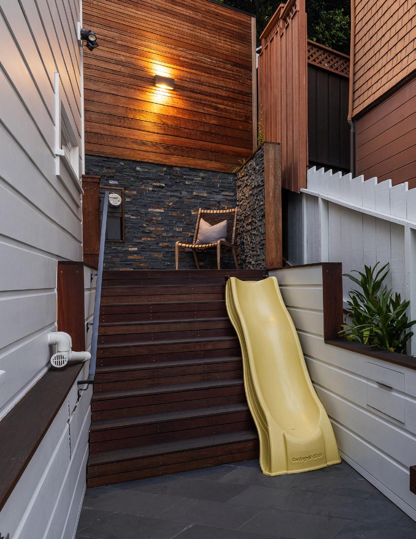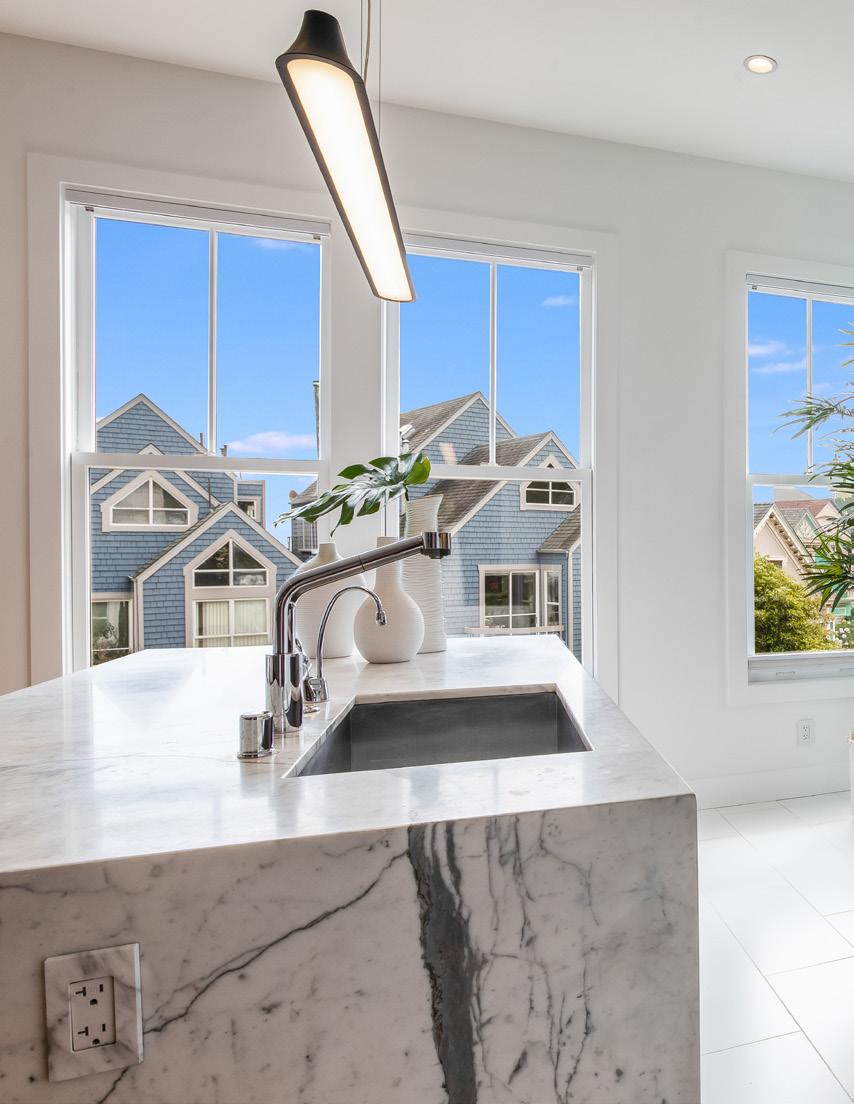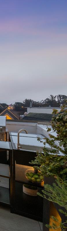 Wrapped in an inventive side garden with access to the massive roof deck, indoor/outdoor livability is key. A slate walkway leads to the shared exterior assets: thoughtfully clad, lighted, Ipe stairs rise to embrace rich stonework and culminate in a stunning, robust roof terrace equipped with an outdoor lounge, kitchen and dining with East Bay views, built-in audio, and maximum entertaining potential.
