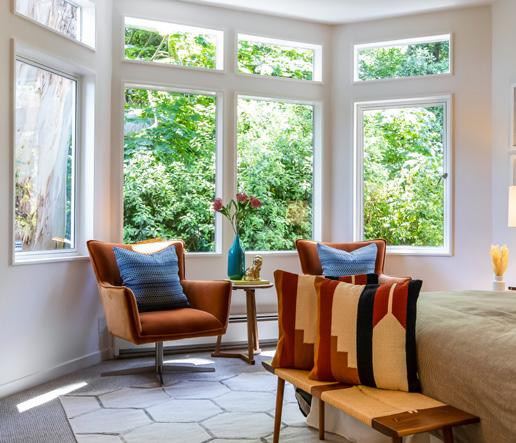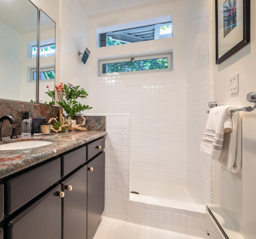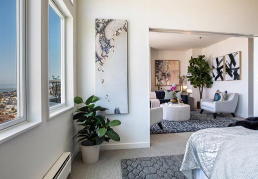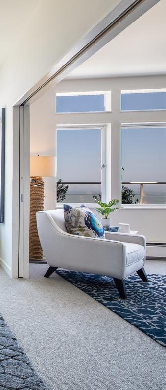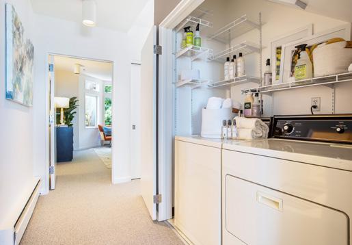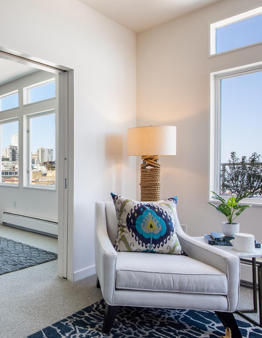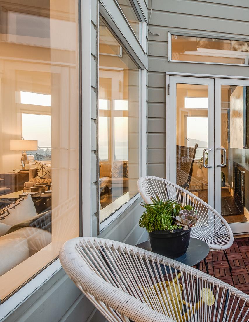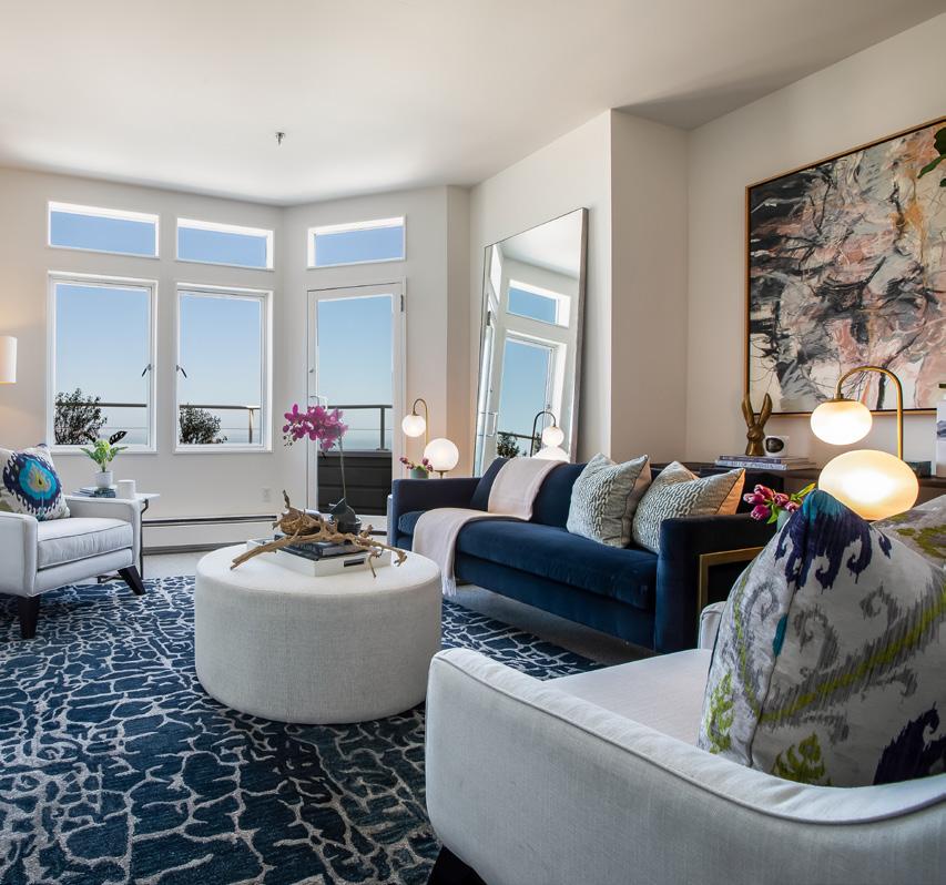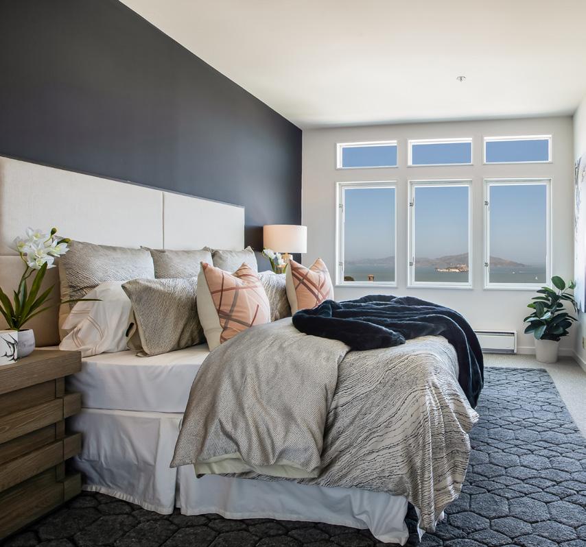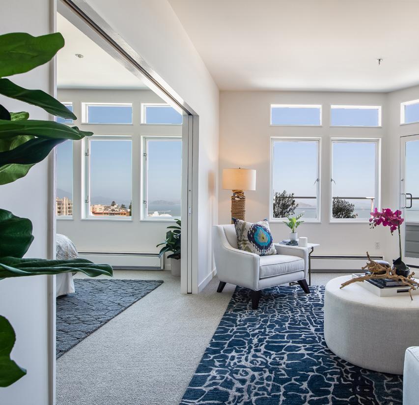 Two Bay view bedrooms have been converted with pocket doors and are used as a bedroom with private terrace and lounge/office with adjoining bath and spacious closets. New designer paint scheme, lighting, refinished hardwood floors, and new carpet create a fresh, movein-ready modernity. The fully equipped laundry room and copious storage make this home as comfortable as convenient.