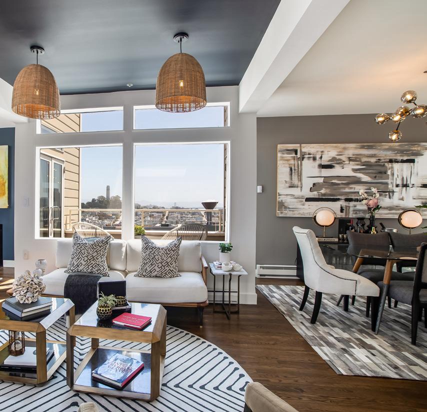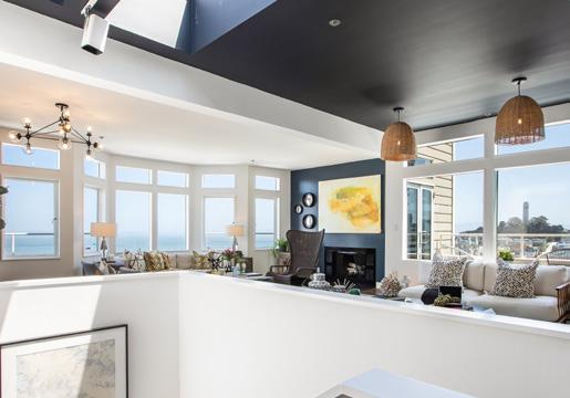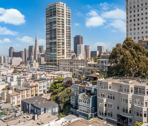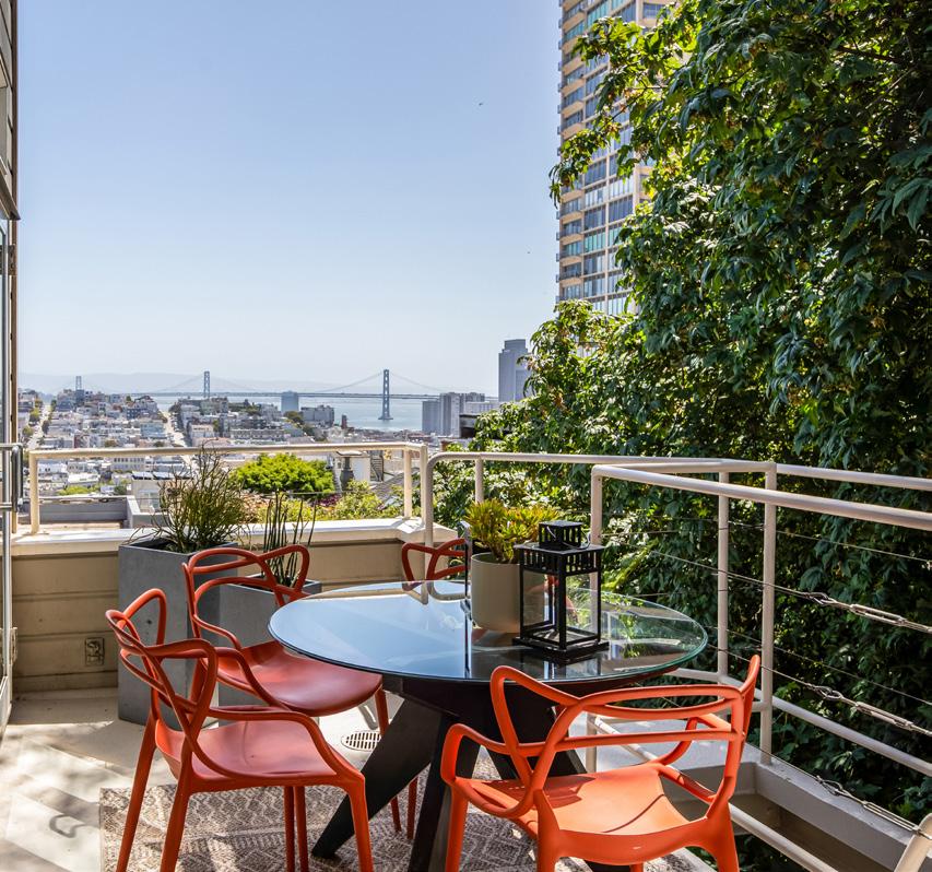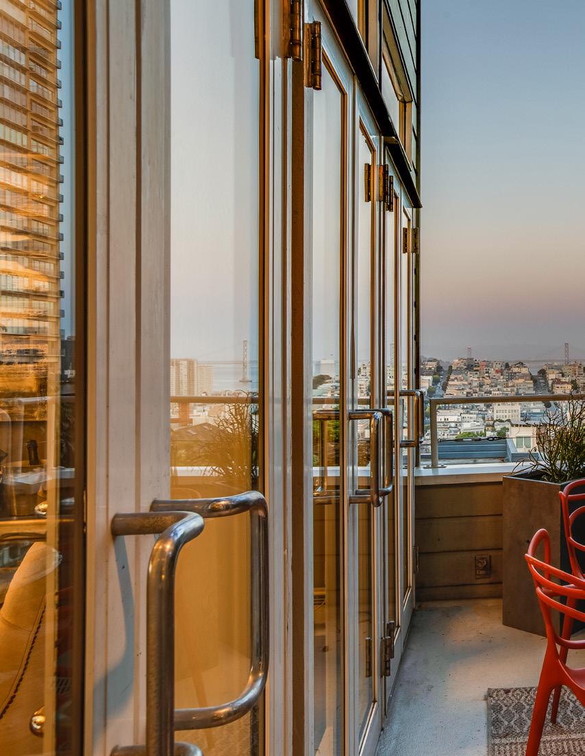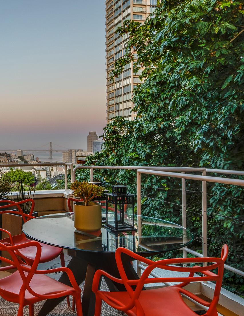 Floating above the Bay with sparkling panoramic views and a majestic treehouse feel, this luxurious penthouse condominium sits at the apex of one of San Francisco’s quintessential neighborhoods on a treasured, hidden garden lane. The largest and finest residence in the building, this home was designed by the original builder for their own use, featuring expansive open plan living spaces and embraced by 300-degree views of the Bay, Alcatraz, Coit Tower, city lights, and Marin Headlands.