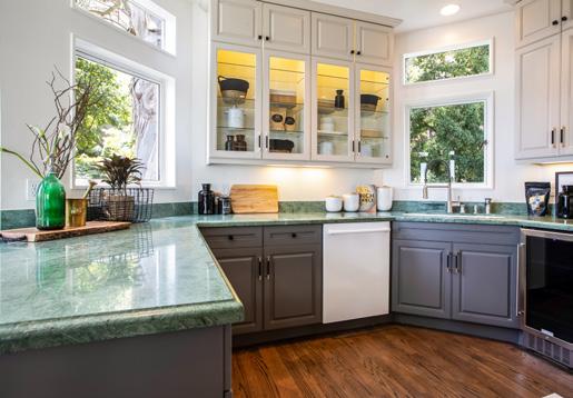 BEAUTIFULLY ARTICULATED CUSTOM KITCHEN WITH GLASS FRONTED CABINETS
