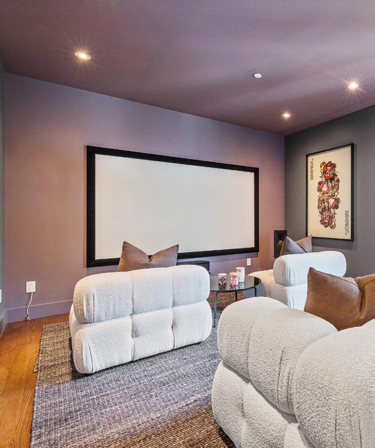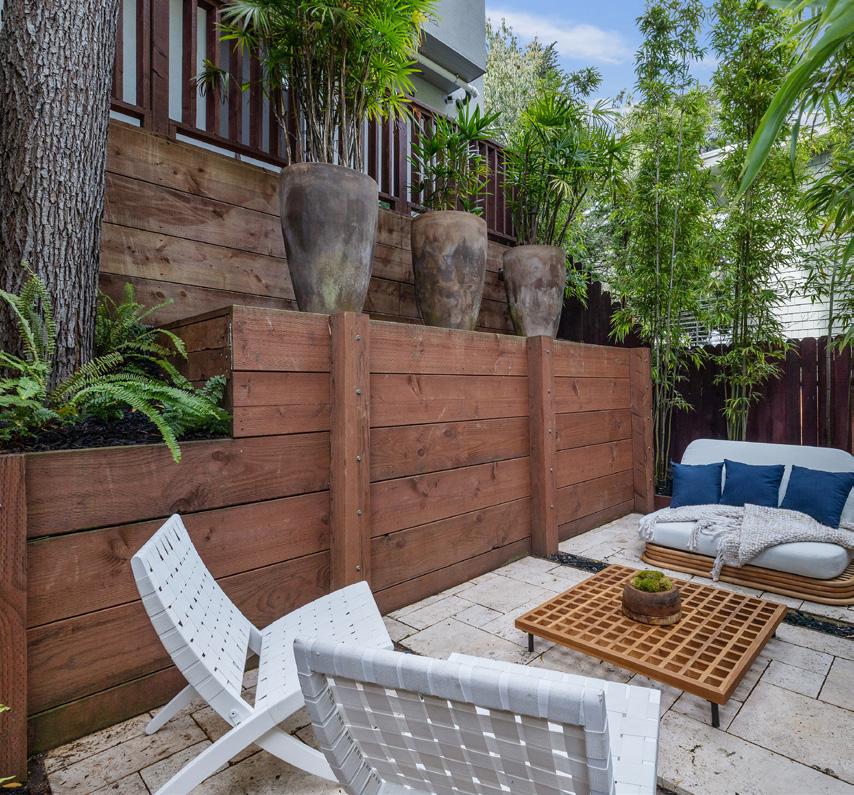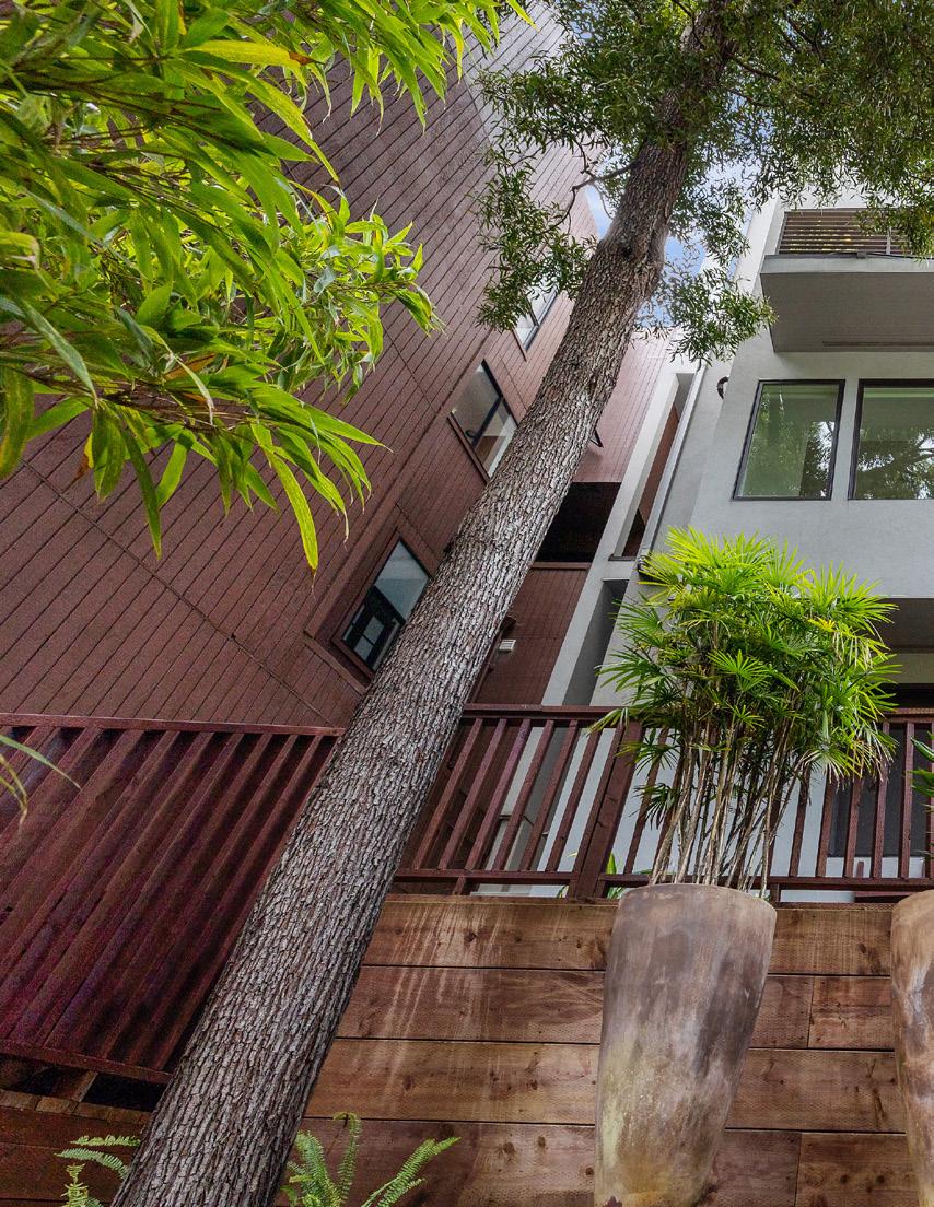 At the garden level are a full suite of rooms for entertaining and guest space: home theater, wet bar, lounge, and guest quarters. Below is a lovely sheltered terraced garden with lavish tropical plantings and leafy lounge space. Many custom elements include motorized drapes and shades, gorgeous gas fireplace, high tech lighting, a home entertainment system, and integrated audio.