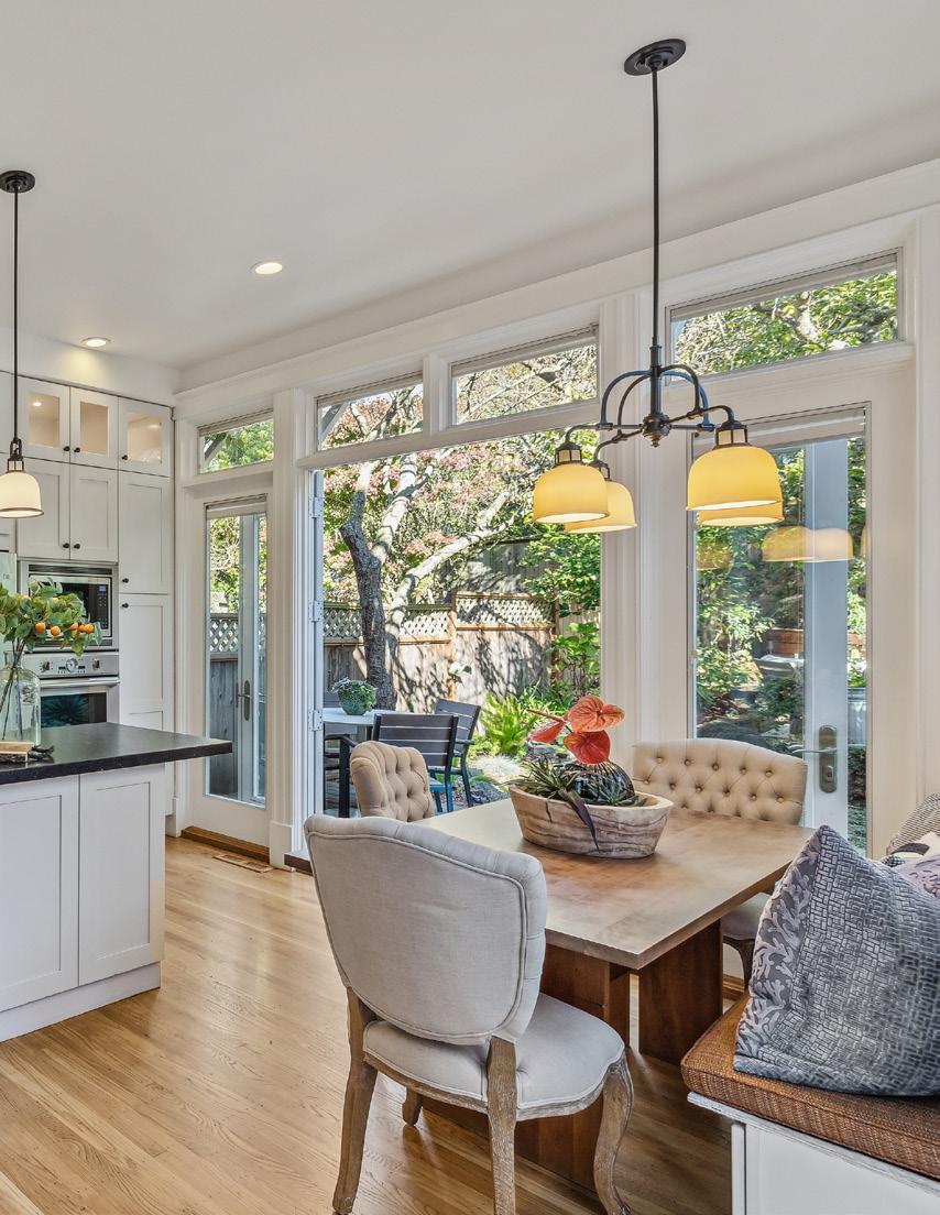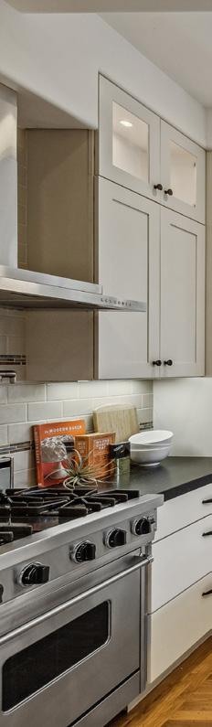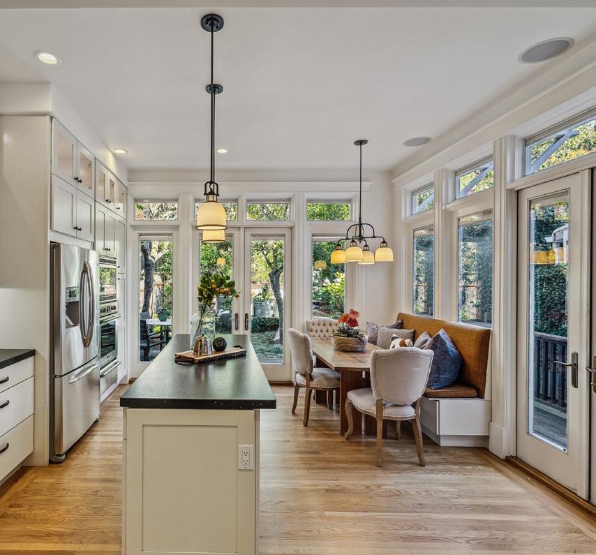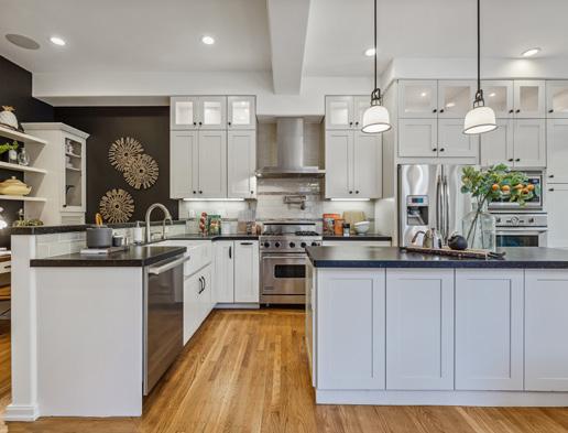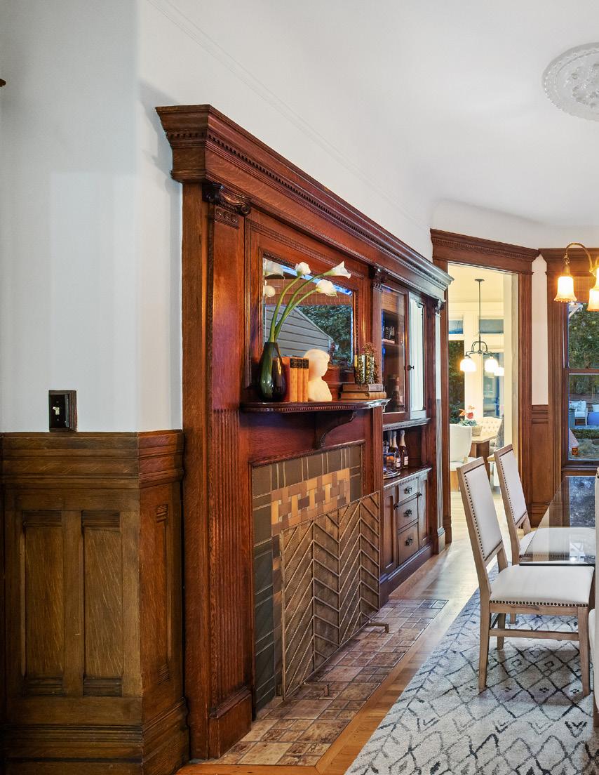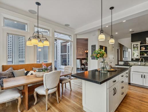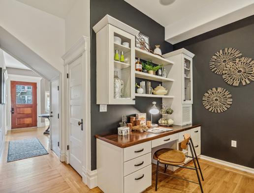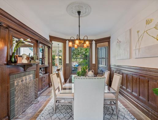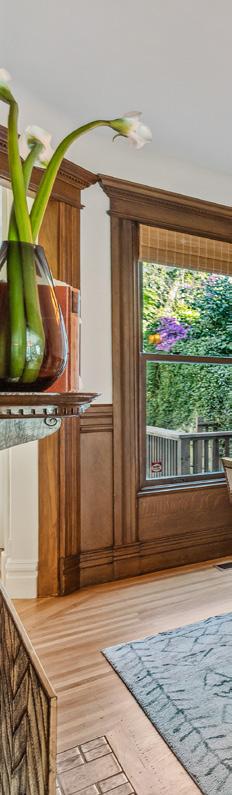 Preserved period elements including stunning millwork, gorgeous period mantel and hutch, and pristine hardwood flooring enhance the sophisticated warmth of the public rooms. Formal living and dining rooms open to an expansive, professionally appointed custom kitchen with eat-in space and direct access to the deck and garden. Viking range with pot filler, double ovens, huge Caesarstone island, robust storage, pantry, and home office make this a hardworking and welcoming space.