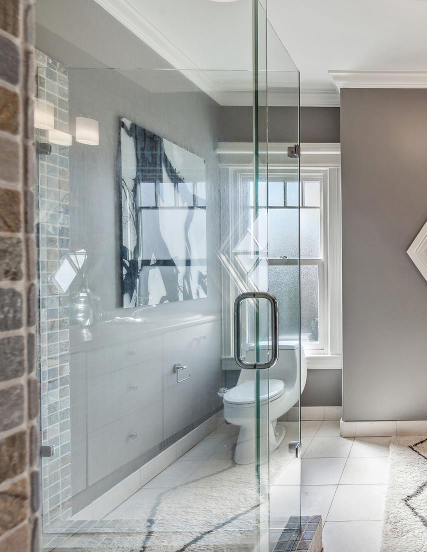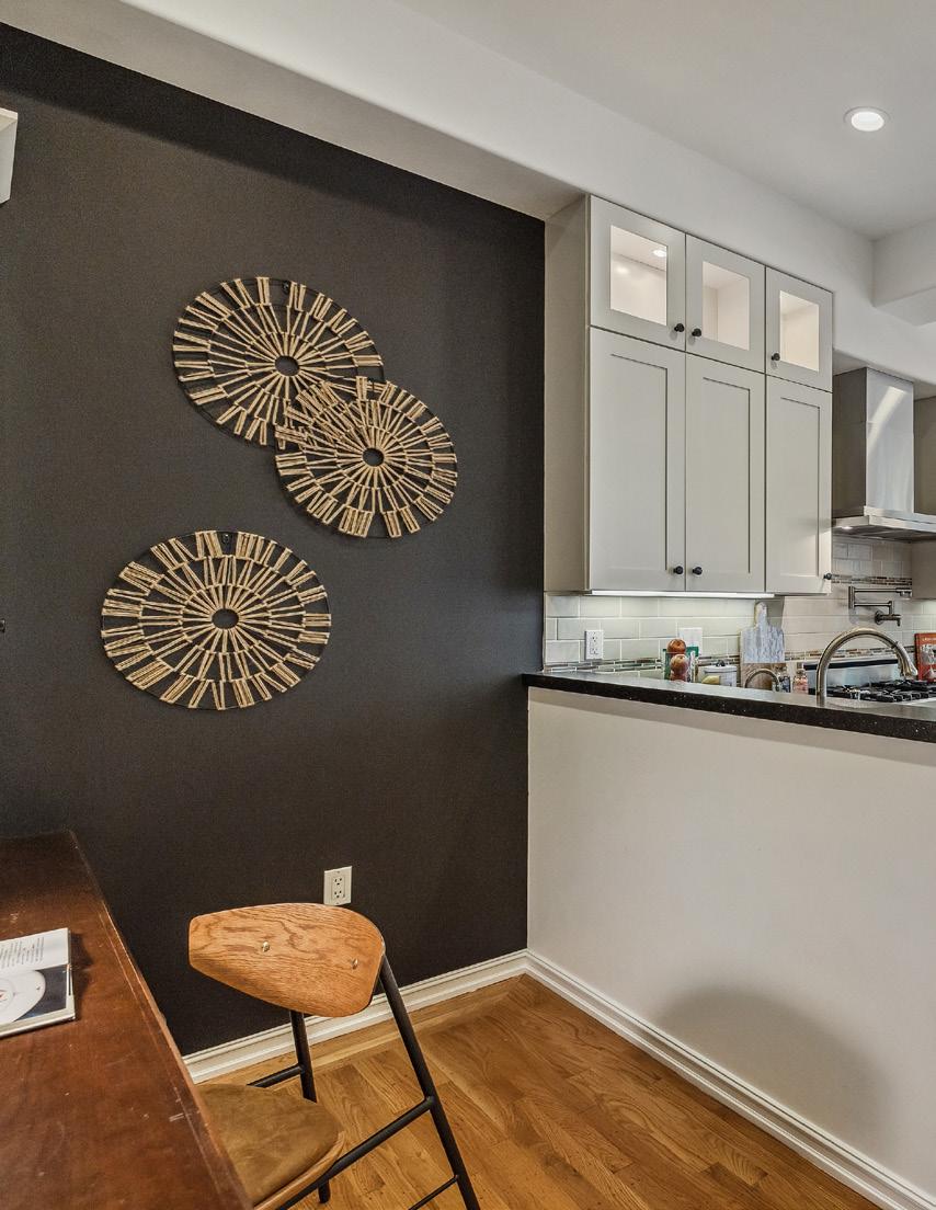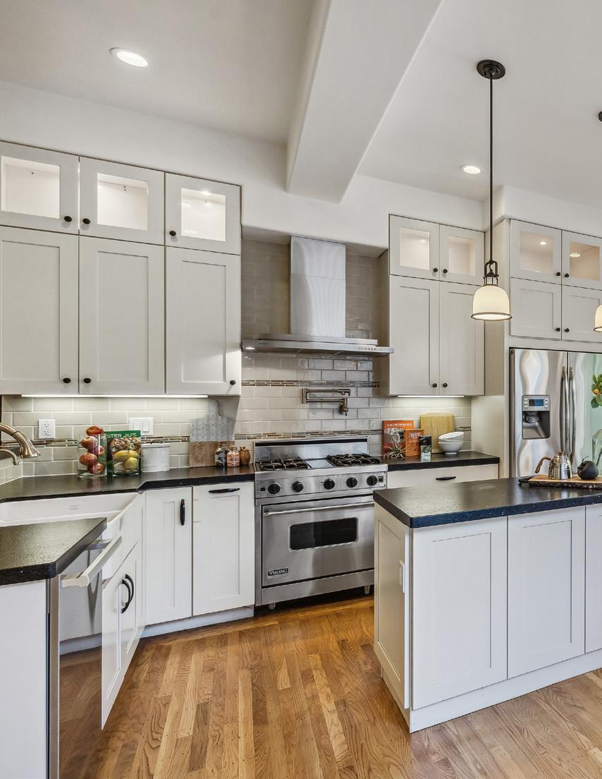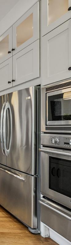 Preserved period elements including stunning millwork, gorgeous period mantel and hutch, and pristine hardwood flooring enhance the sophisticated warmth of the public rooms. Formal living and dining rooms open to an expansive, professionally appointed custom kitchen with eat-in space and direct access to the deck and garden. Viking range with pot filler, double ovens, huge Caesarstone island, robust storage, pantry, and home office make this a hardworking and welcoming space.