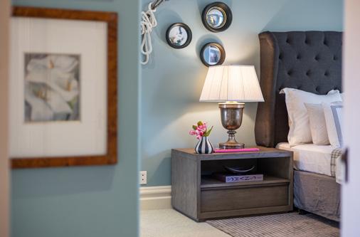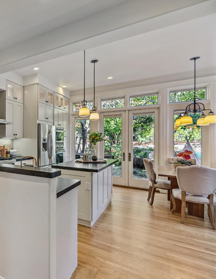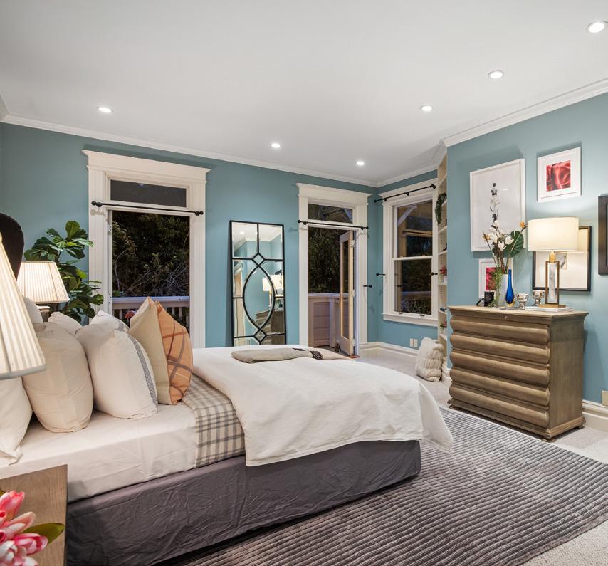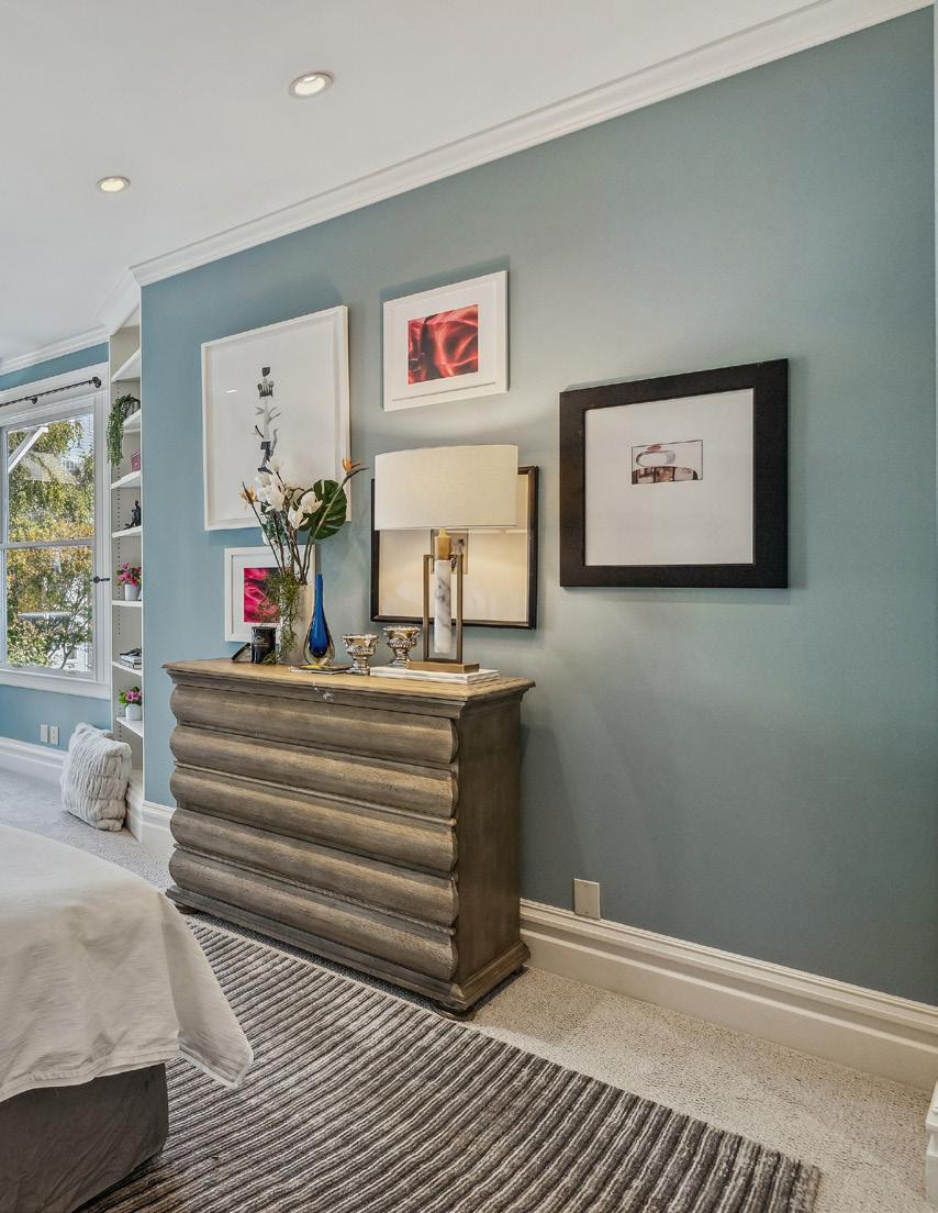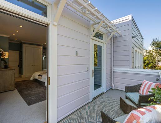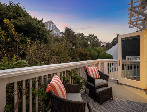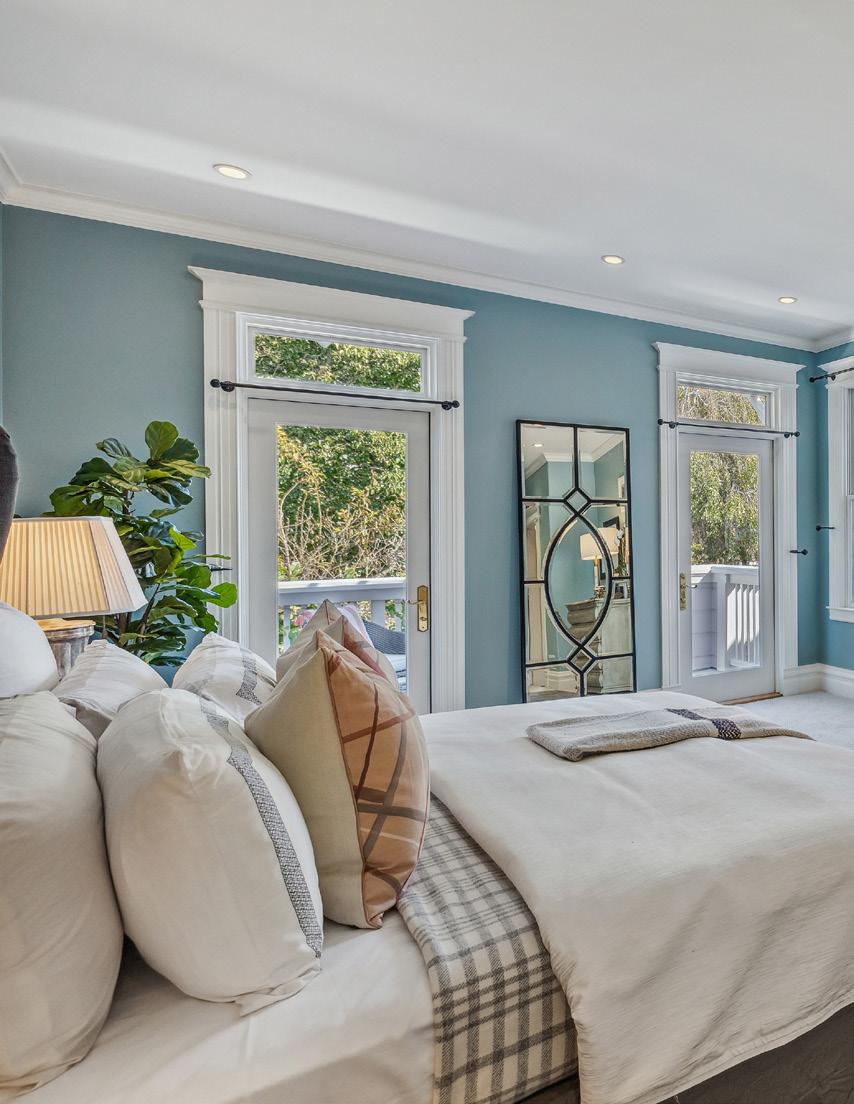Upstairs are three bedrooms and two baths, the primary a serene suite with built-in wardrobes, custom closet, and balcony overlooking the garden.