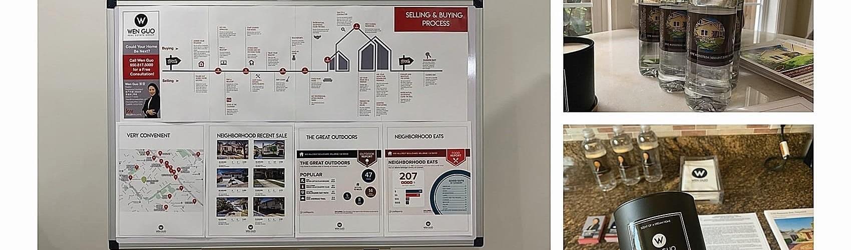 From premium brochures, feature displays, to bottled water, everythin is branded with your home’s info for a memorable buyer experience