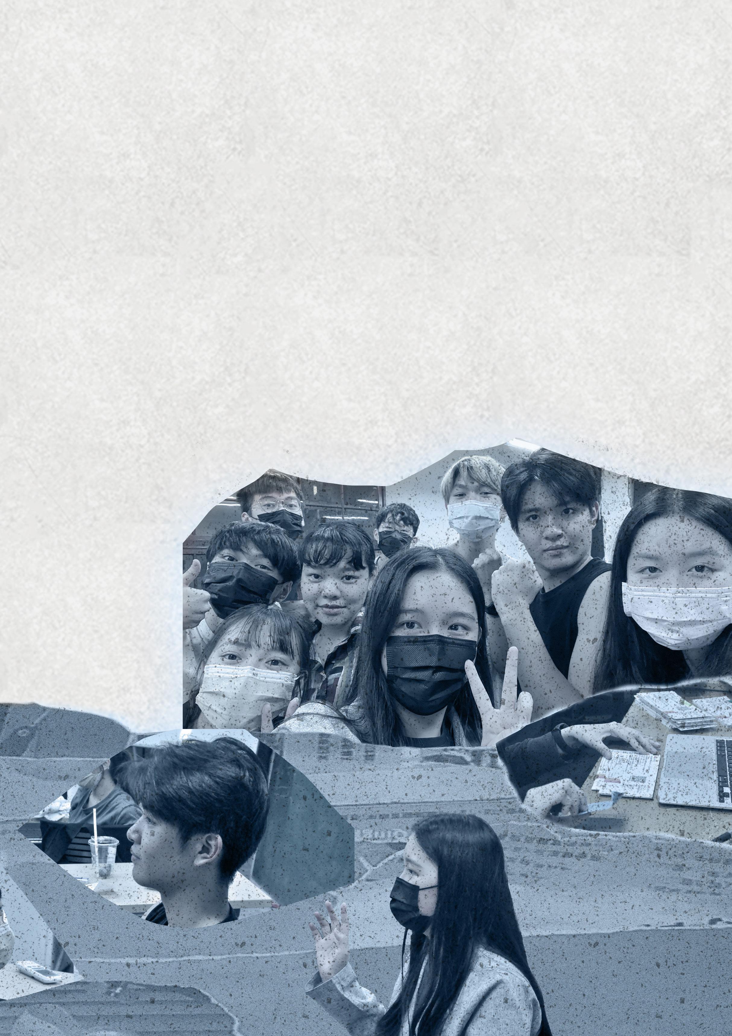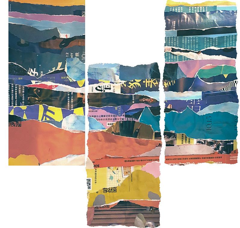 平面設計 盧幸玟 2021 臺大戲劇系獨立畢業製作《浮魚》導演助理 2022 臺大戲劇系導演一《ㄓㄣㄅㄤˋ》演員 2022 臺大戲劇系學期製作《一千零一夜》行銷宣傳 2022臺大戲劇系導演創作專題《洗》演員 2022 臺北藝穗節《渡》執行製作暨平面設計 設計理念| 視覺畫面中的海與岸,是用系上放表演藝術傳單櫃子拿來的各種表演文宣撕碎後拼 貼而成。撕碎,拼貼,像個個人相異卻雜合一起的B08,顏色紛雜因此需要調和, 薄薄的藍色圖層,但成品其實,還不錯吧我猜。(應該啦哈) 說設計理念的時候總笑說,那些鬼手啊,從那些撕碎的傳單海伸出來求生的,就是 未來在表演藝術之海中浮沈的你各位。其實無論是不是在表演藝術圈子裡,生而在 世總是浮浮沈沈。不過還有岸吧。不過還有那個也是勉強拼湊而成的太陽吧。希望 你們都記得有這些,希望這些微渺但總是存在的希望,能夠足以乘載你們的浮沈。 想說的話| 撕碎再拼貼,其實也像是我六年太長也太紛亂的大學生涯,我想大學到整個人生都 會持續載浮載沉,帶著不可承受之輕之重,感謝身邊的人給我的大大小小的光。 無論如何,人生中的這六年,謝謝哲學系,謝謝戲劇系,謝謝所有相知相惜與別離。
