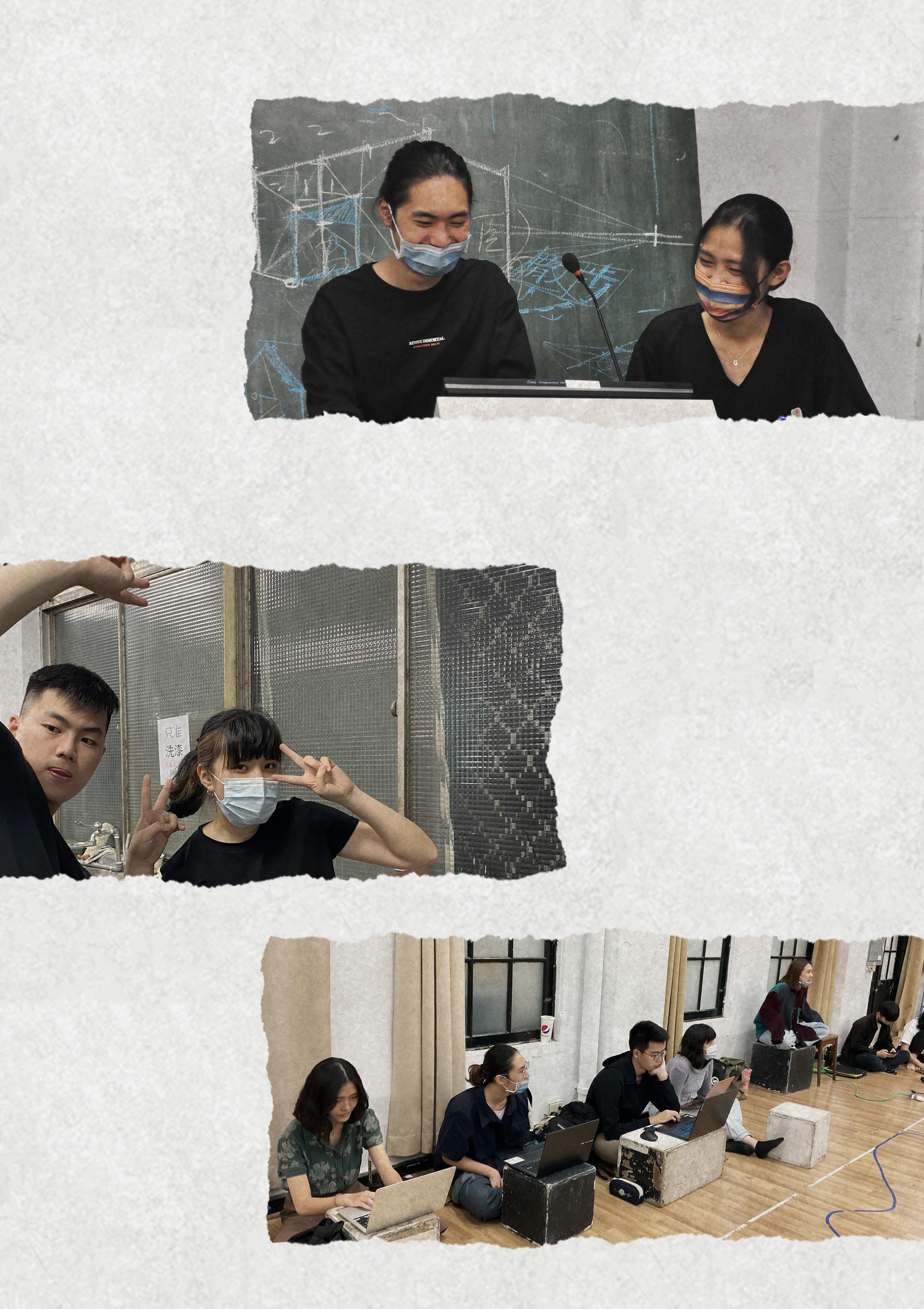 我的時間都被偷走了,我好難過 真的…好想…畢業 無台組辜啊!學會搭了很多角度刁鑽的台,謝謝boss和其他組員。 舞台組員 凌凱 2021 臺大戲劇系導演一《嘎抓》舞台設計助理 舞台組員 何以恩 2022臺大戲劇系學期製作《一千零一夜》執行製作助理 舞台組員 張采容 2021臺大戲劇系導演一《可不可愛》舞台設計助理 2022臺大戲劇系大一製作《明年此時》組員