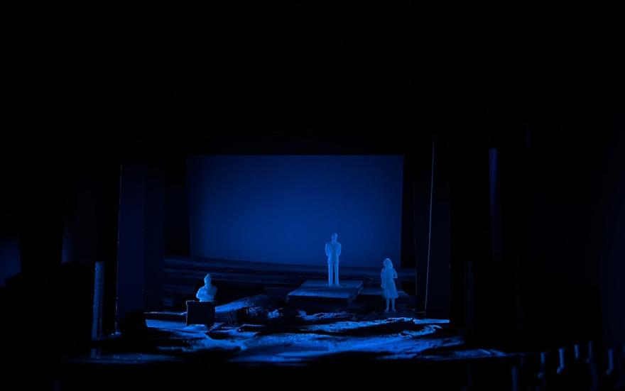 導演的話| 「女子走入了大海,於是男子錯身了神,但在看不見的女孩身上他遇見了。浸泡完美的女孩 期盼看見完美之外的世界,屍身取代了妻子,幻肢痛束縛女兒的洋裝灼燒衰老的心,死胎的 母親為不在世的兒子贖罪,哲學家破碎的烏托邦殘骸是孤寂的愛,海水灌溉的沙地無法成為 綠洲,神錯身了眾生,女子走向了大海。」 最初始於一個疑問:「紅髮女子究竟是誰?為何走向大海?大海是什麼?」全劇貫穿大海的