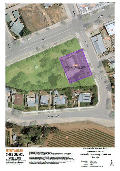 This Community Land Plan of Management (PoM) for Wentworth Shire Council is a first PoM prepared for the LGA under the Crown Land Management Act 2016 (CLM Act). It comprises Crown reserves previously managed by the Council as Reserve Trust Manager under the repealed Crown Land Act 1989 and Council-owned community land.